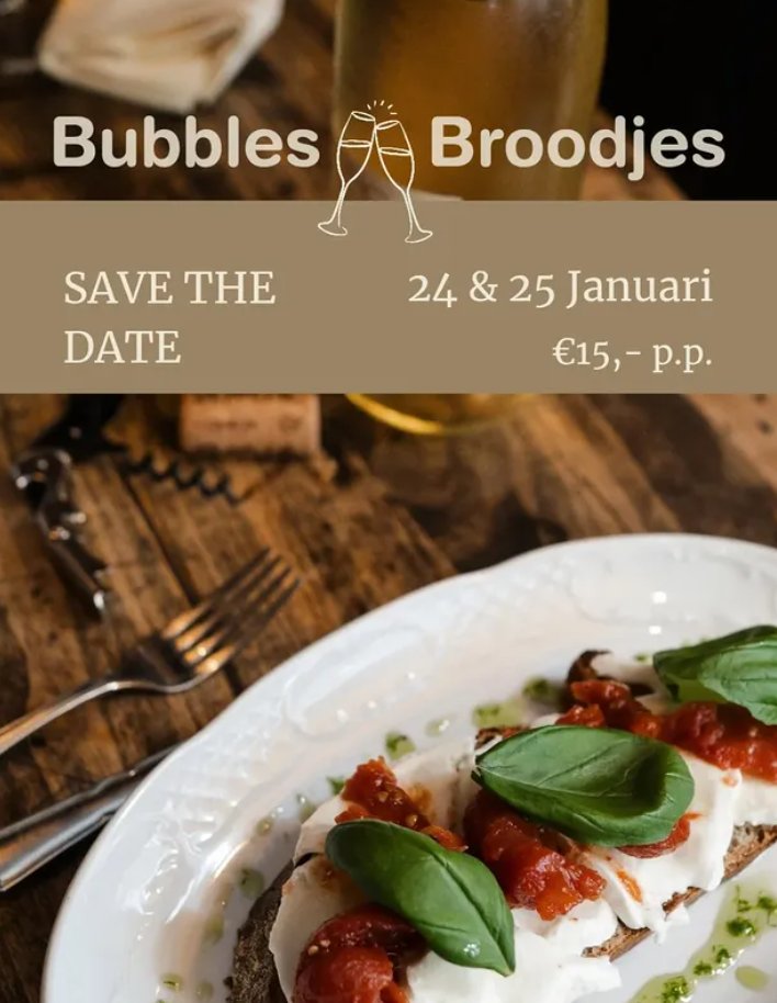 Op 24 & 25 januari ben je uitgenodigd voor Bubbles & Broodjes ter ere van onze nieuwe lunchkaart!