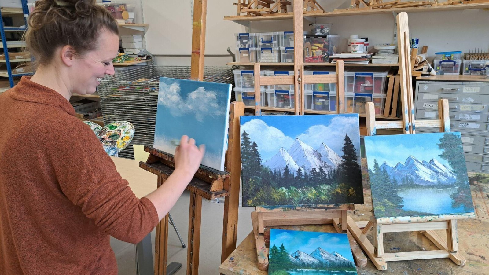 Veel mensen genieten van de rustgevende schilderstijl van Bob Ross. Tijdens deze workshop in zijn stijl leer je stap voor stap een landschap schilderen, zelfs als je geen ervaring hebt. We werken met acrylverf. Zo kun je jouw meesterwerk dezelfde avond nog mee naar huis nemen. Samen met beeldend docent Charlotte ontdek je dat iedereen kan schilderen.