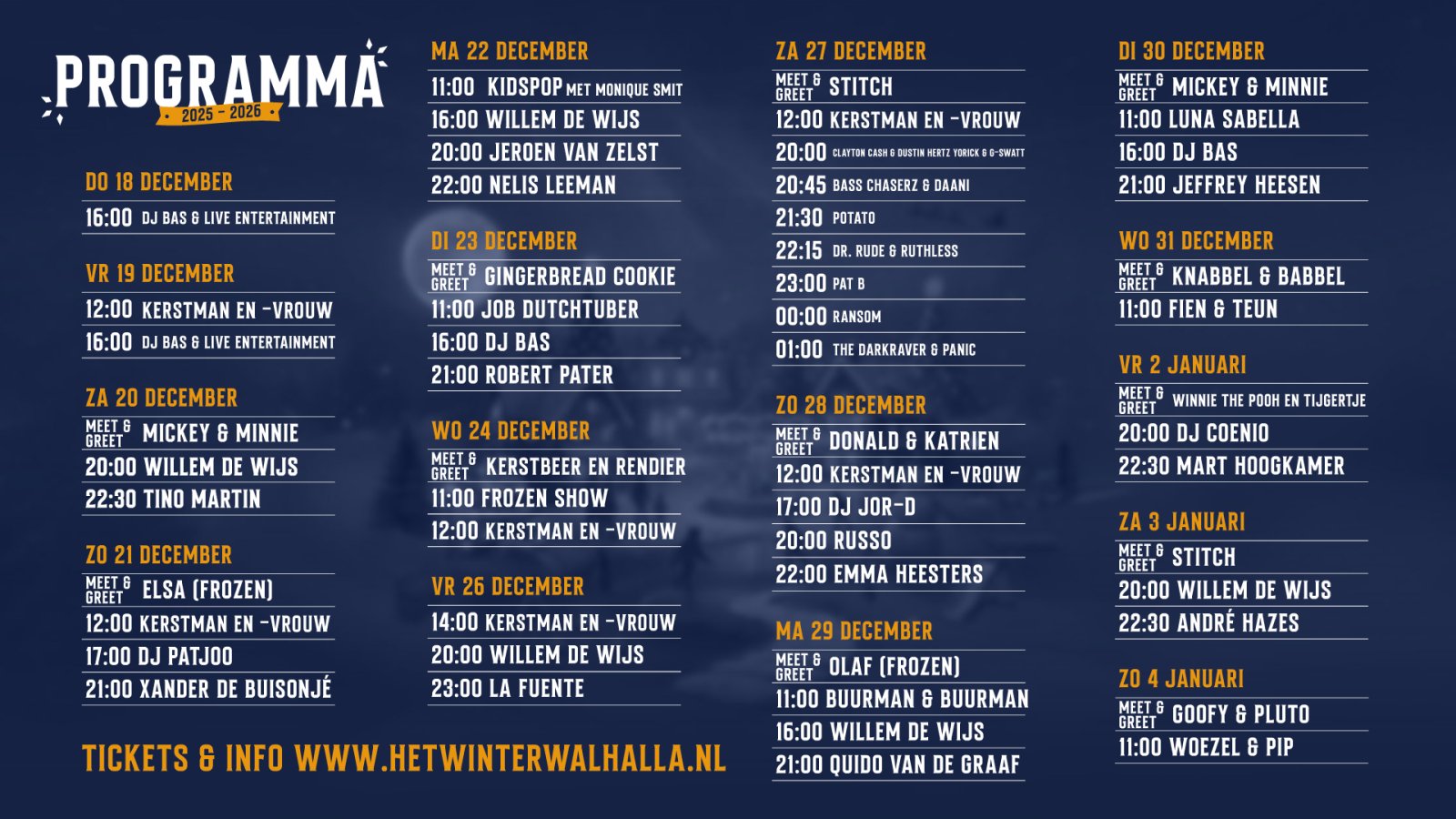 Tijdens Het Winter Walhalla treden er dagelijks de leukste artiesten op! ’s Avonds vind je in het Feest Walhalla en Feestcafé de Scheve Schaats één en al gezelligheid.
