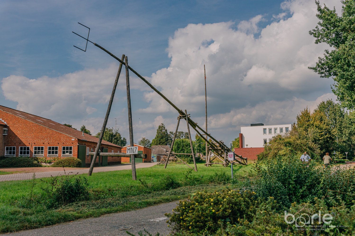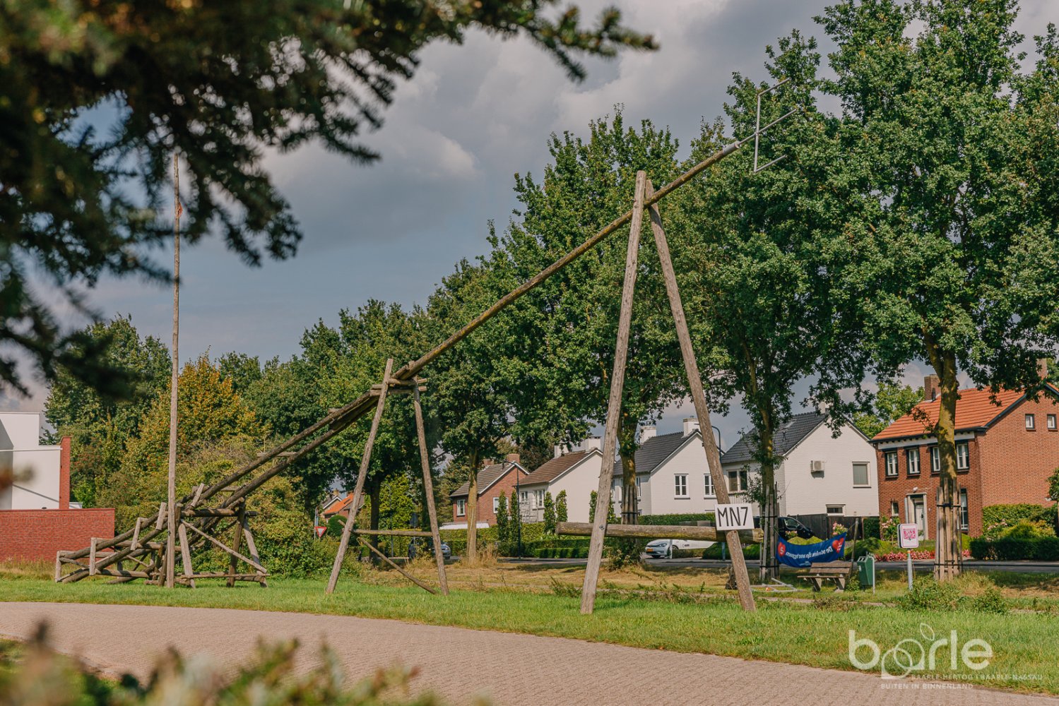 Op de hoek bij het kruispunt Leliestraat/Boschovenseweg bevindt zich een reconstructie van de veertig meter lange centrale antennemast van het draadloze militaire zend- en ontvangststation MN7. Vanaf maart 1915 werd de installatie door het Belgische leger opgebouwd. Tientallen mensen slaagden erin om de plannen meer dan een half jaar geheim te houden! Voor de aarding werd met de spade een put uitgegraven van drie en een halve meter diep en met een omtrek van 27 meter. De aarding bestond uit zinken platen. Die maakten een hels lawaai bij het vervoer, wat Nederlandse douaniers niet stoorde. Zij namen net hun middagpauze. Een grote partij steenkool werd per trein aangevoerd. De kolen werden niet naar de geadresseerde op het vervoersdocument gebracht, maar naar het zendstation. Omdat de kar niet goed afsloot, was op de weg een breed spoor van steenkoolgruis zichtbaar. Het viel niemand op. Veertig scheepsmasten van achttien meter lang kwamen vanuit Zaandam naar het treinstation van Baarle-Nassau. Een lokale ambachtsman vervoerde de palen per twee of drie met een handkar (!) naar het zendstation. Niemand stelde zich vragen.