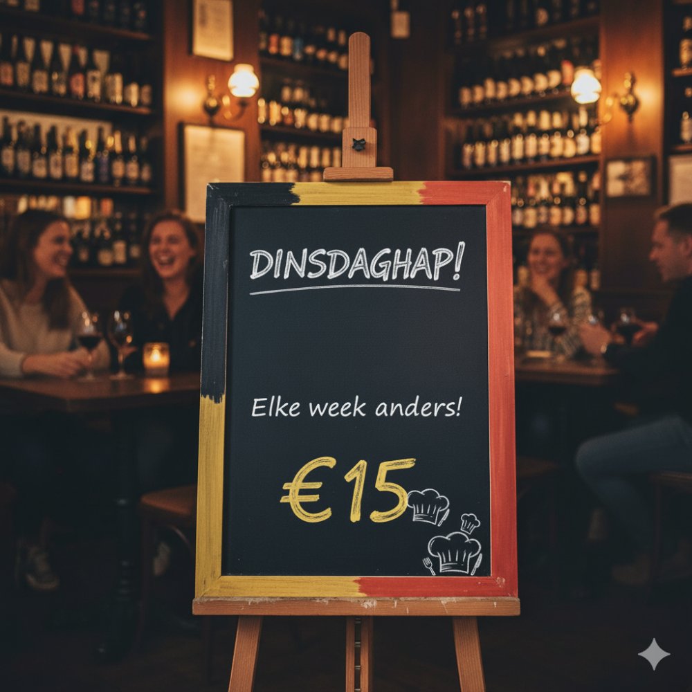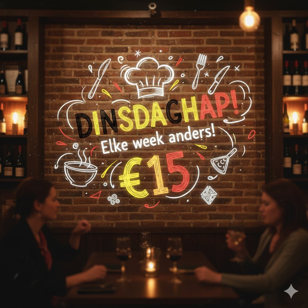 Op zoek naar een reden om uit eten te gaan op dinsdag? Gevonden! Vanaf nu tovert onze chef elke week een ander heerlijk gerecht op tafel. Voor slechts €15. Laat je verrassen door de creaties van onze chef en geniet van een smakelijke en betaalbare maaltijd.