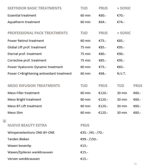 Welkom bij NUEVO BEAUTY! U kunt bij ons terecht voor verschillende gezichtsbehandelingen eventueel met MESO INFUSION, wimperextensions en tanden bleken. Wij zorgen ervoor dat u op een ontspannende manier de behandelingen ondergaat en u even nergens aan hoeft te denken.