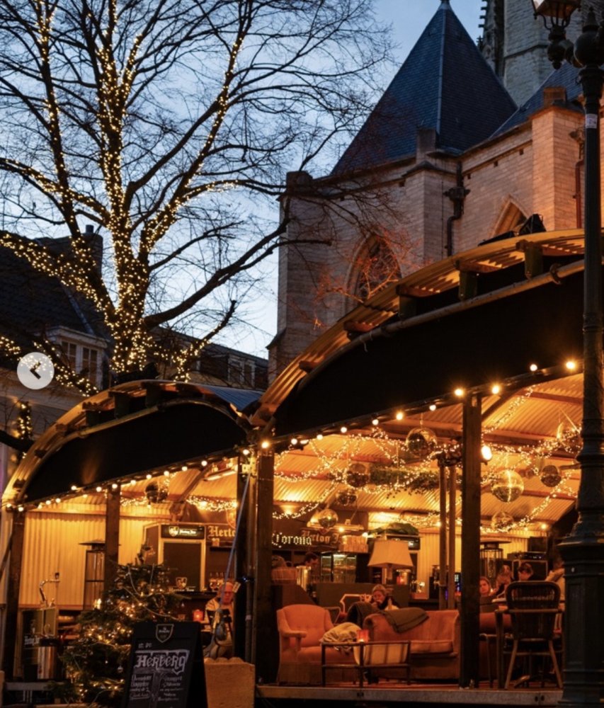 Een heerlijk overdekt en verwarmd winterterras onder de Grote Kerk. Bij Café de Bruine Pij zit je niet alleen binnen in het café, maar ook buiten er gezellig bij deze winter. Vanaf 20 november 2025 tot en met 4 januari 2026 heten we je elke dag van harte welkom om samen de koude dagen door te brengen. Geniet hier van Glühwein, verschillende speciaalbieren en smakelijke lunch- en borrelhapjes, allemaal geserveerd in een gemoedelijke huiskamersfeer.