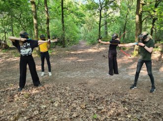 Schiet op elkaar met pijl & boog. In dit uitdagende spel schiet je met pijl en boog op elkaar! De pijl heeft een zachte larp-kop, waardoor je kan schieten op de tegenstanders aan de overkant.
