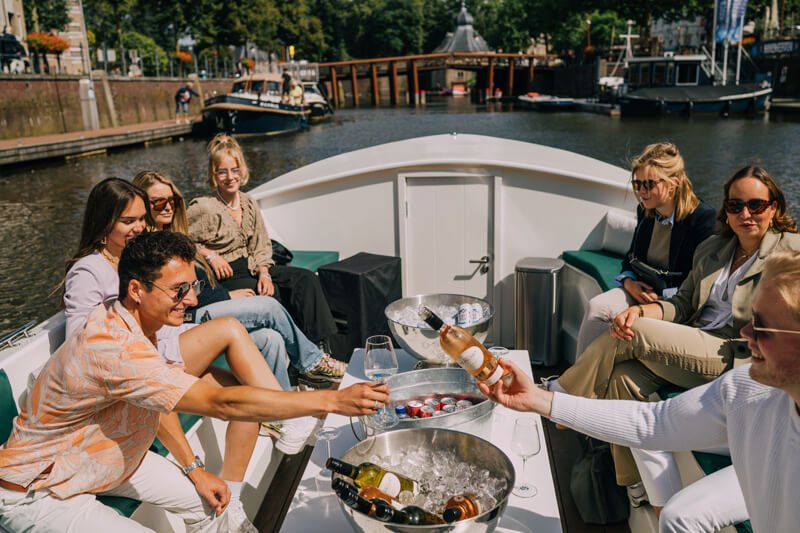 Geniet van een ontspannende vaartocht op de drankjesboot in Breda. Deze 100% elektrische boot met toilet biedt een unieke en milieuvriendelijke manier om de prachtige singels van Breda te verkennen. Met een selectie aan bier, wijn, frisdrank en water is er voor iedereen wat wils. Alle drankjes worden ijskoud geserveerd vanuit grote wijnkoelers gevuld met ijs, zodat je optimaal kunt genieten van je zomerse vaartocht.