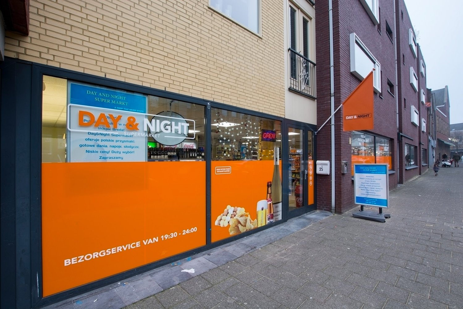 De echte avondwinkel van Breda, de Day and Night Supermarkt. Met een ruim assortiment aan dranken, etenswaren, verzorgingsproducten en nog veel meer. Bij de Day and Night Supermarkt slaag je altijd. Bezorging is mogelijk en gratis vanaf 15 euro, exclusief tabak. Ook bier en andere dranken kunnen koud, tegen de normale winkelprijs, worden bezorgd. Day and Night Supermarkt: garantie voor tevreden klanten. Loop eens binnen en ervaar het zelf. De winkel is ook tijdens alle feestdagen geopend.