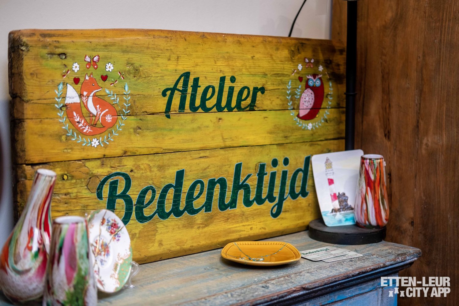 Tessel Stadegaart van Bedenktijd organiseert creatieve workshops op locatie. Ze is met haar 'winkeltje' gevestigd op de eerste verdieping in hofje Het Regiment aan de Bisschopsmolenstraat / Grauwe Poldervoetpad.