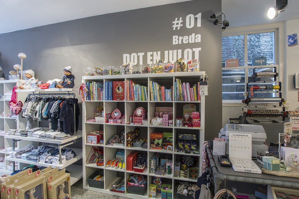 Dot en Julot, de gezelligste kinderwinkel in de Veemarktstraat waar je terecht kunt voor de leukste kleding tot en met maat 152. Daarnaast hebben we ook veel cadeautjes voor jong en oud! We kunnen met recht zeggen "Het Koninkrijk der Eigenwijzen"