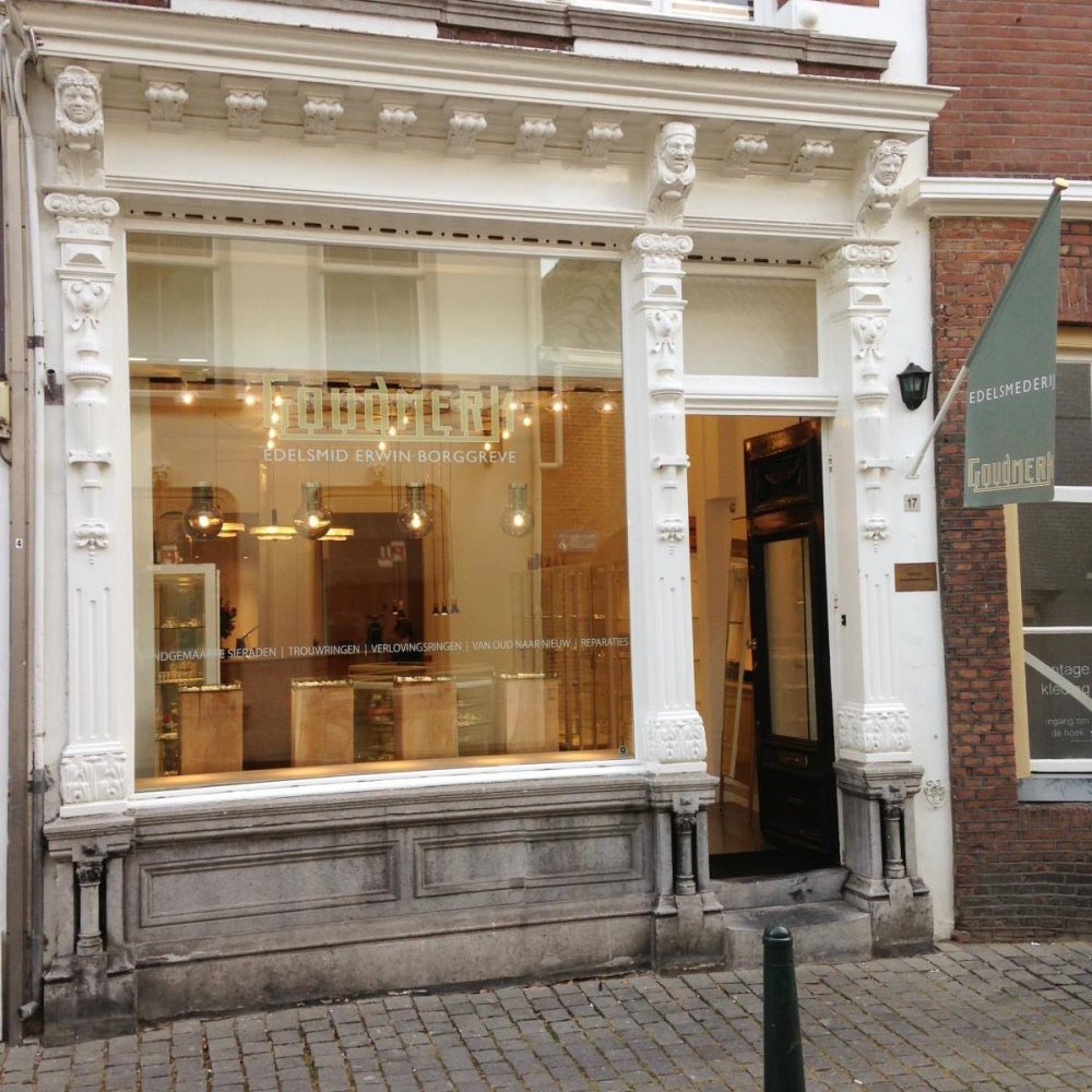 Bij edelsmederij Goudmerk ontwerpt, maakt en presenteert Erwin zijn collectie sieraden. De winkel in Breda is ruim en rustig ingericht zodat je op je gemak de sieraden kunt bekijken en passen. Vanzelfsprekend geeft Erwin graag een toelichting op het verhaal achter de sieraden. Vanuit de winkel heb je direct zicht op de werkruimte. Daar werkt Erwin aan de Goudmerk collectie met ringen, colliers, armbanden, oorstekers en oorhangers. Daarnaast maakt Erwin graag persoonlijk vormgegeven sieraden, zoals unieke verlovingsringen en speciaal ontworpen trouwringen. In het atelier worden ook reparaties en aanpassingen aan bestaande dierbare sieraden verzorgd. Lees verder