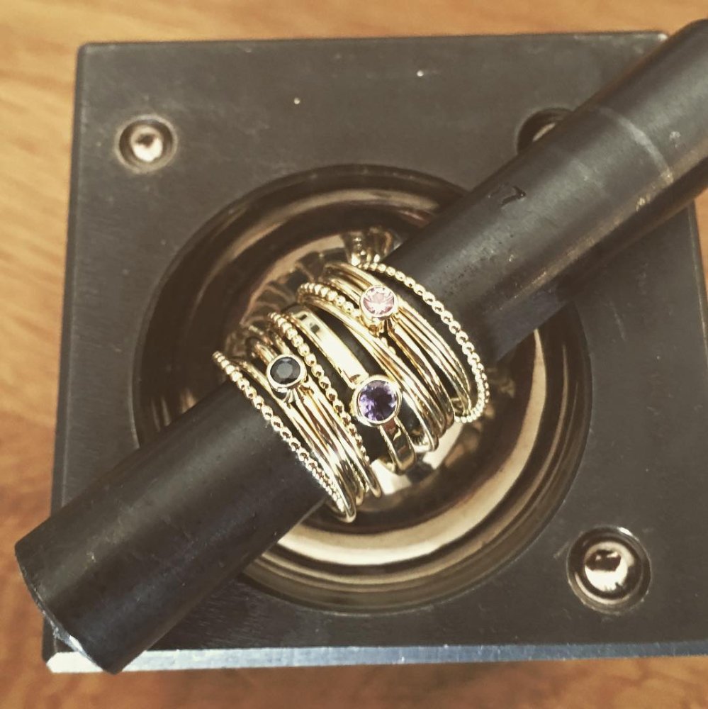 Vanuit de winkel heb je direct zicht op de werkruimte. Daar werkt Erwin aan de Goudmerk collectie met ringen, colliers, armbanden, oorstekers en oorhangers. Daarnaast maakt Erwin graag persoonlijk vormgegeven sieraden, zoals unieke verlovingsringen en speciaal ontworpen trouwringen. In het atelier worden ook reparaties en aanpassingen aan bestaande dierbare sieraden verzorgd.