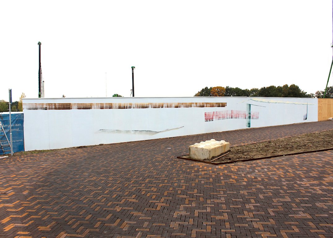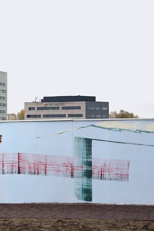 Met de schildering wil Romee van Oers (NL) mensen bewust maken van hun lichaam en de omgeving. De verfstreken zijn voortgekomen uit de richtingen en hoeken van de daken en flats die je boven de muur uit ziet komen. De muur en omgeving lopen in elkaar over en vormen samen een beeld. Lees verder