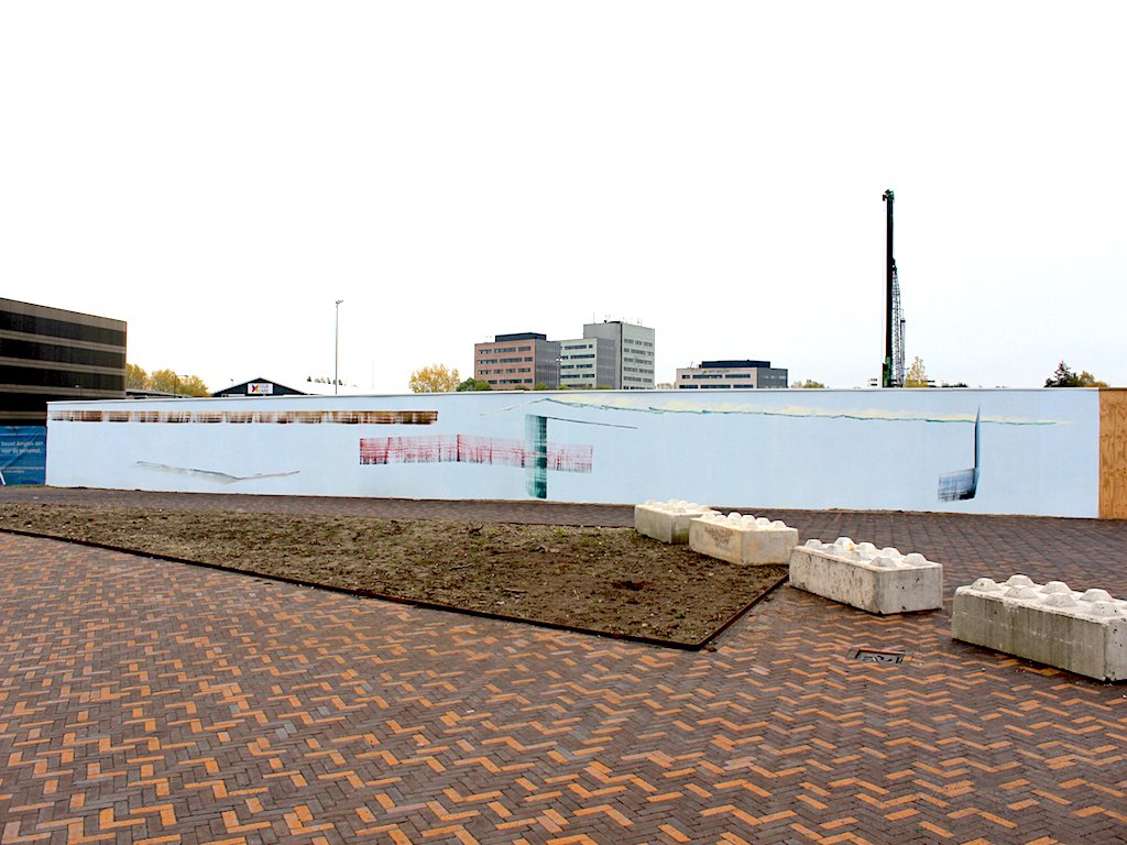 Met de schildering wil Romee van Oers (NL) mensen bewust maken van hun lichaam en de omgeving. De verfstreken zijn voortgekomen uit de richtingen en hoeken van de daken en flats die je boven de muur uit ziet komen. De muur en omgeving lopen in elkaar over en vormen samen een beeld.