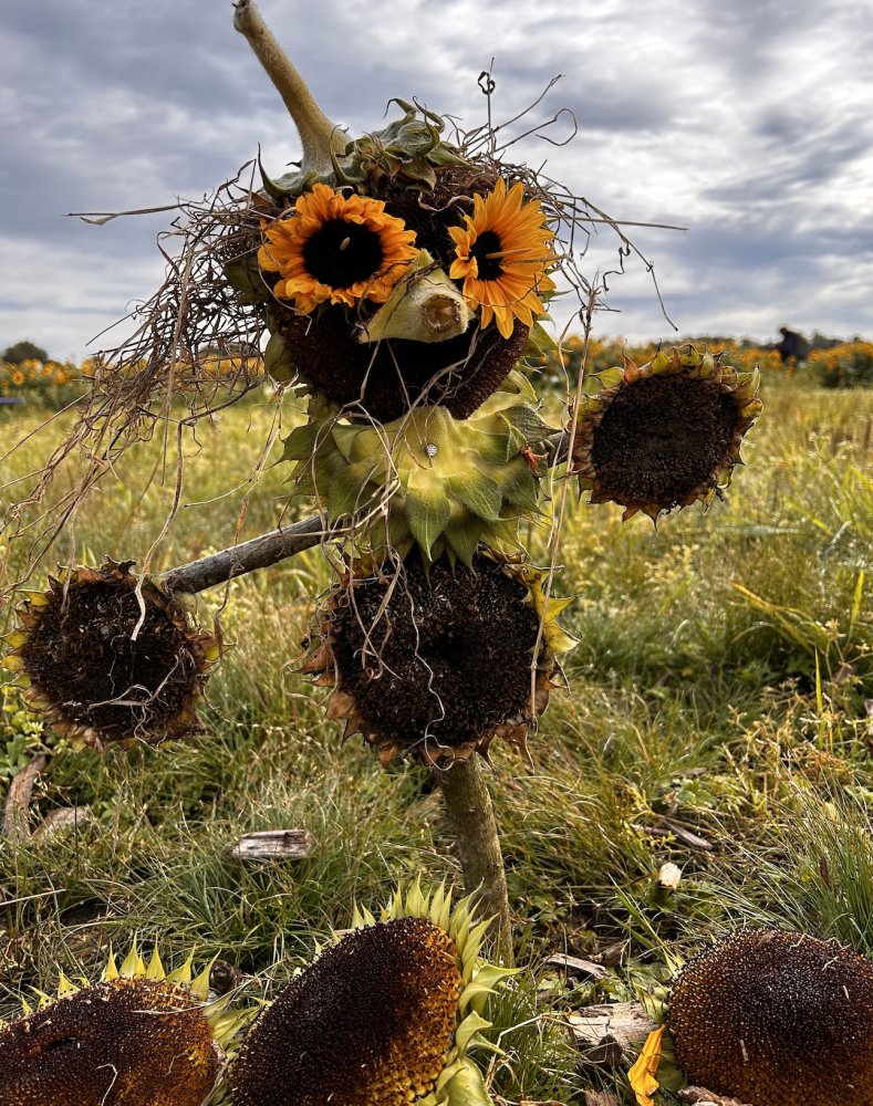 Zo'n mannetje neem je mee naar huis en zet je in de tuin. Omdat alles van natuurlijk materiaal is zal het mannetje langzaam blaadjes en zaadjes verliezen en uit elkaar vallen. Het is tenslotte een herfstpoppetje! En…. misschien staan er in het voorjaar ineens zonnebloemen op dat plekje!