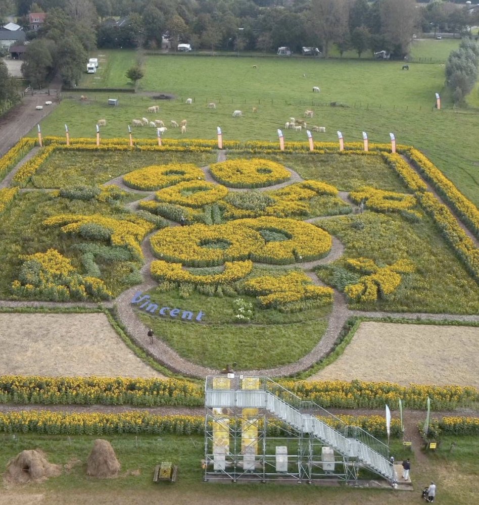 Het project van het levende zonnebloemschilderij bij de Menmoerhoeve nadert de herfst. Na de herfstvakantie wordt de uitkijktoren afgebroken. Het schilderij is nog de rest van het jaar te bezoeken en dan zien we het geel langzaam veranderen in herfstkleuren, terwijl tal van vogels op de zaden afkomen.