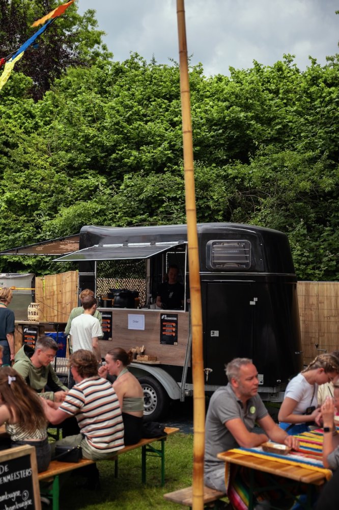 De foodtrailer wordt niet alleen op locatie gebruikt, maar ook bij grote groepen in hun eigen restaurant. Door de achterpoort te openen, wordt de tuinruimte vergroot. Gasten kunnen hun drankjes halen bij de buitenbar en hun eten bij de paardentrailer, waardoor zij optimaal kunnen genieten van de buitenbeleving, terwijl het restaurantgevoel behouden blijft.