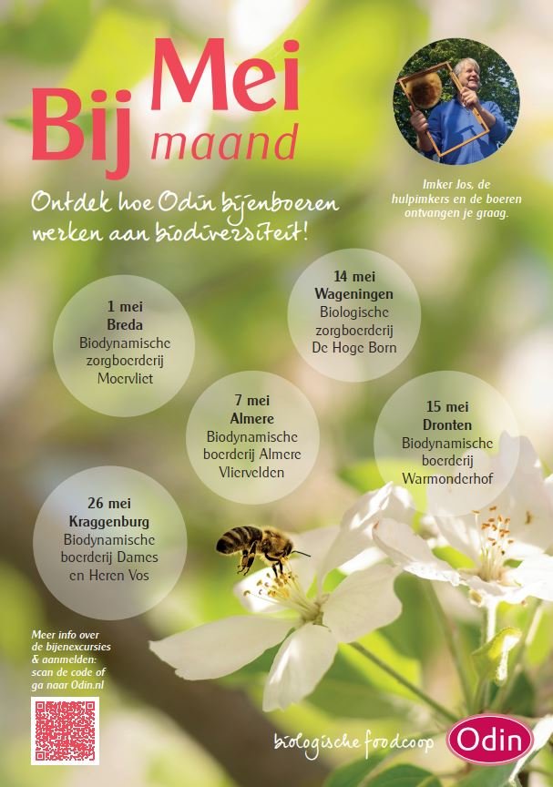 “De Odin imkerij steunt de biodiversiteit niet alleen op deze vijf boerderijen, maar ook op 21 andere locaties” aldus Jos. “Ik hoop dat veel mensen tijdens de Meimaand Bijmaand enthousiast worden over ons werk en daaraan bij willen dragen door donateur en Vriend van de Imkerij te worden”.