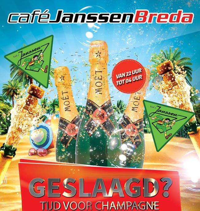 Geslaagd?! Tijd voor een feestje bij Café Janssen! Woensdag 13 juni haal je de hele avond flessen Moët Champagne voor €50,00!