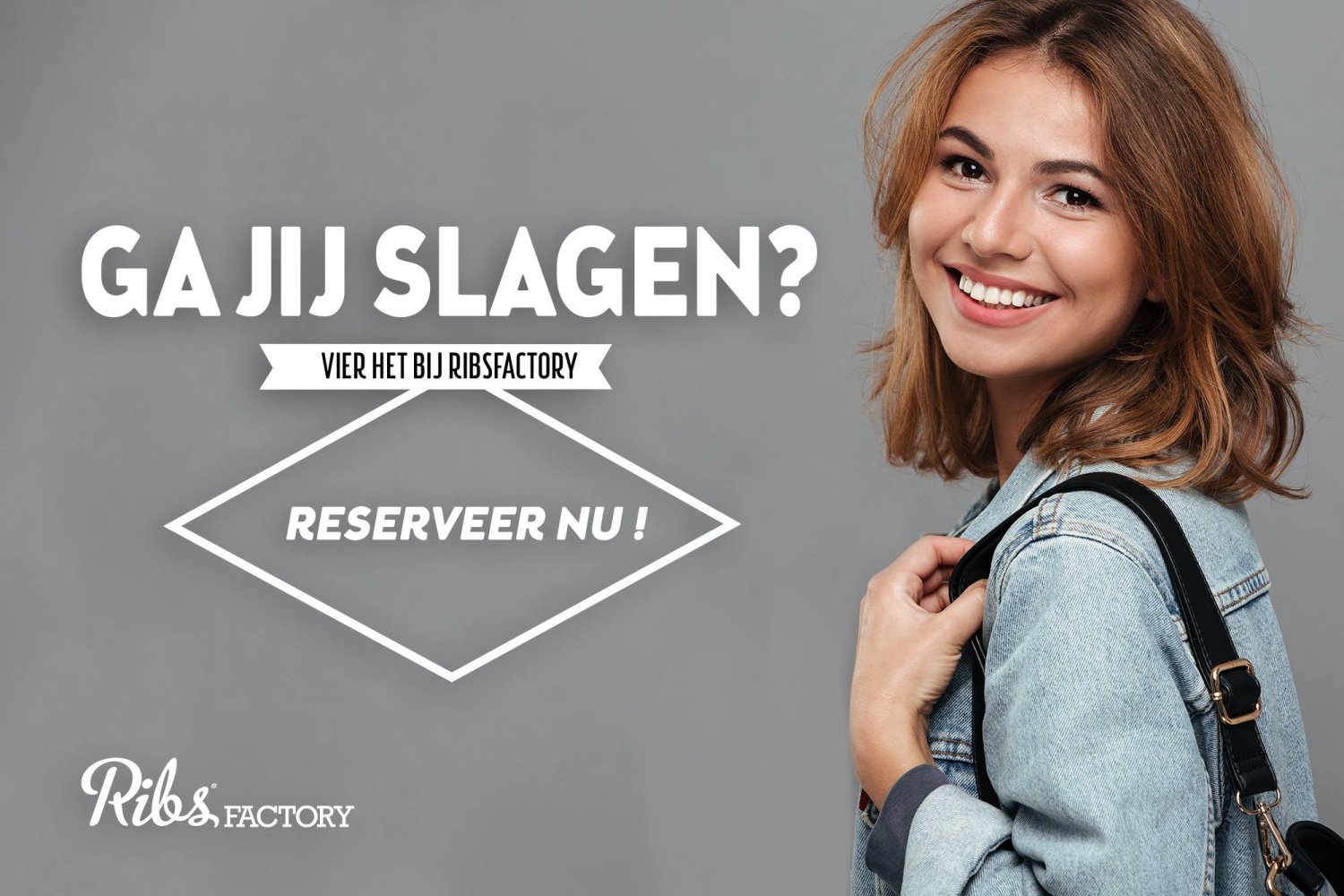 Even van de spanning ontkomen van je examenuitslag? Dat kan met heerlijke spareribs en burgers bij... Ribsfactory! Reserveer voor 13, 14 of 15 juni en als geslaagde krijg jij een dessert naar keuze! Wie neem jij mee?