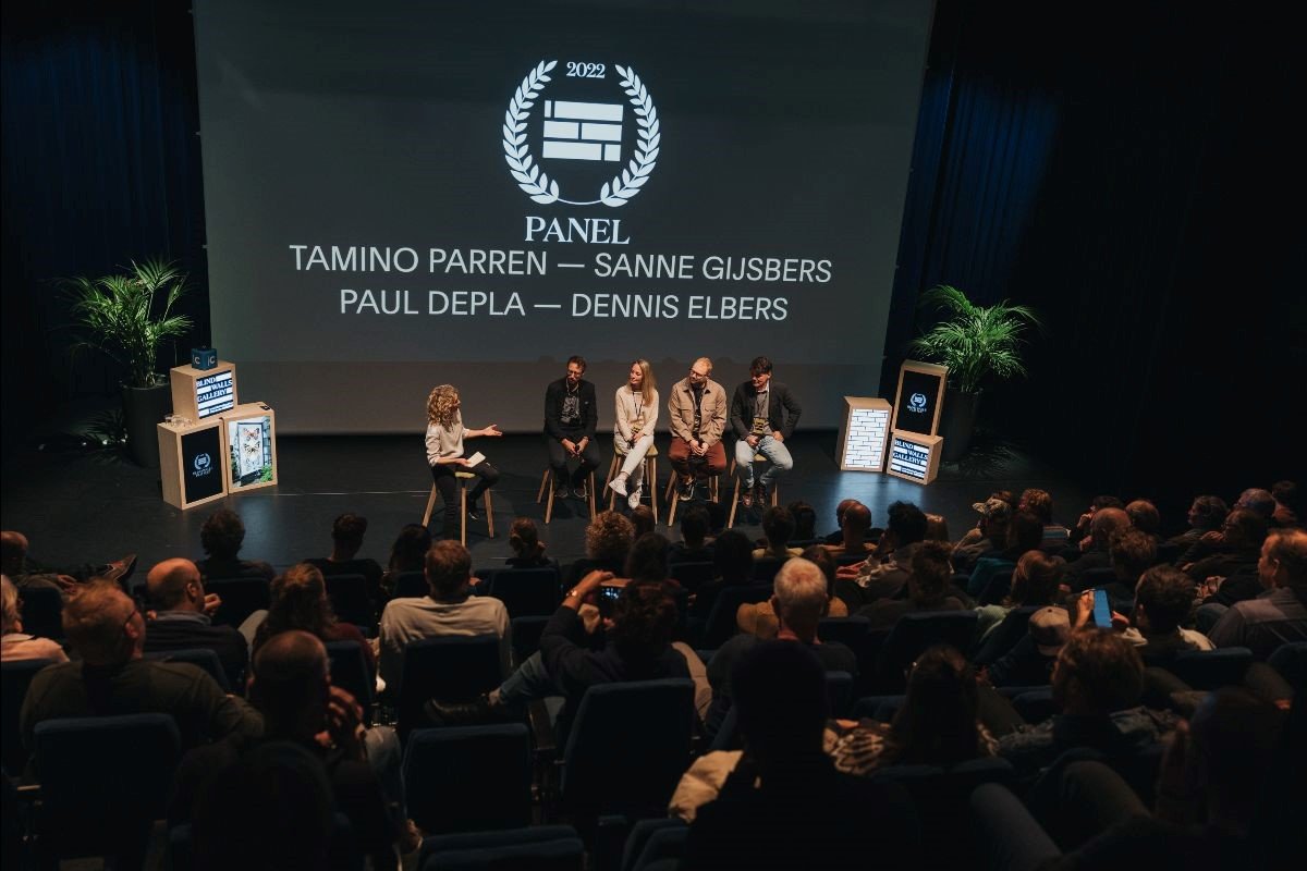 Paneldiscussie na de screening van Mural Hoofdstad. Geleid door Veronique van Zanten met Tamino Parren, Sanne Gijsbers, Dennis Elbers en Paul Depla.