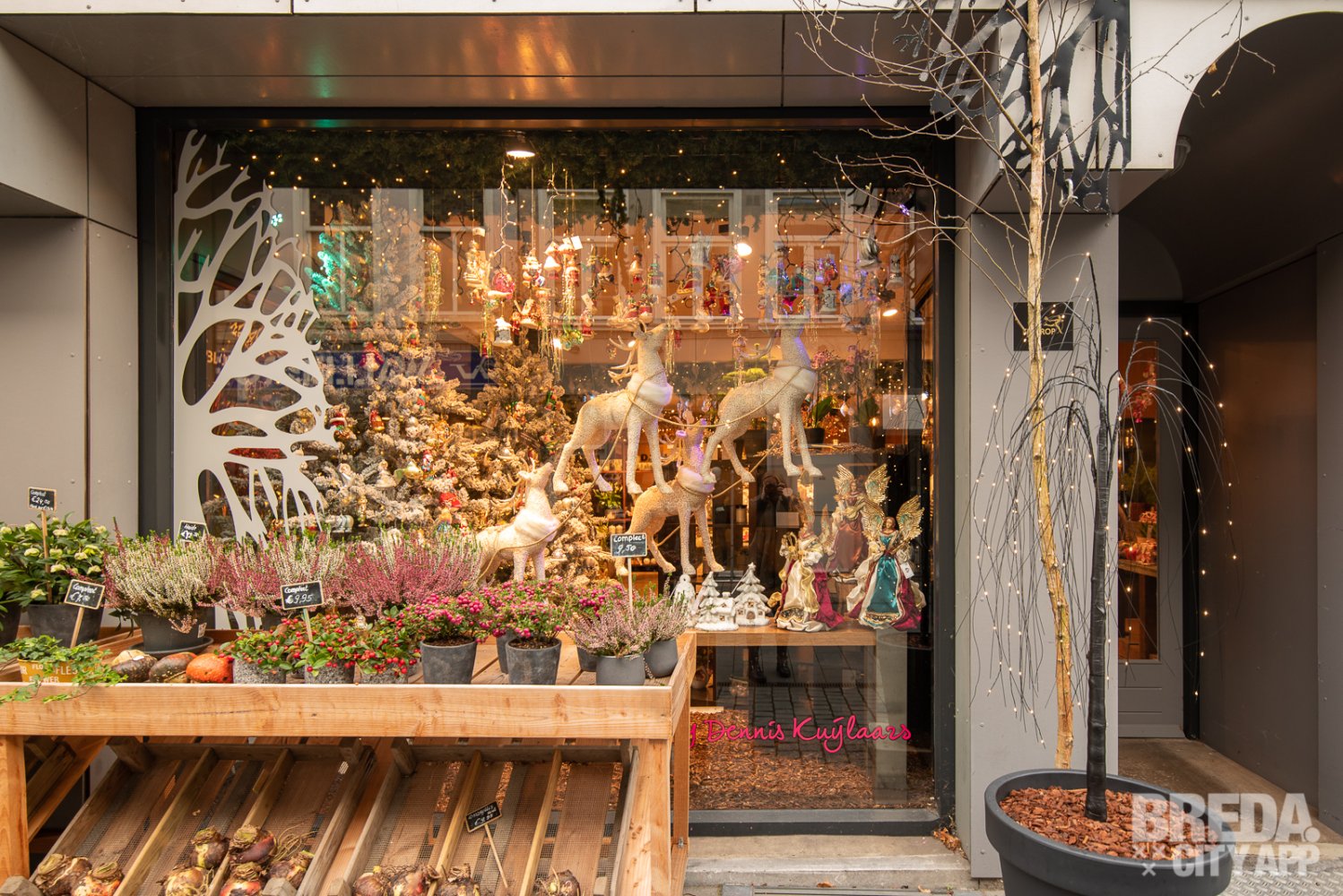 De kerstetalage van Bloem & Plant in de Halstraat is inmiddels een begrip in Breda en omstreken. In de weken voor kerst maakt eigenaar Dennis de winkel nog gezelliger dan dat deze normaal al is. Wij zijn meteen onder de indruk, de winkel is echt prachtig met super veel lampjes en kerstballen!
