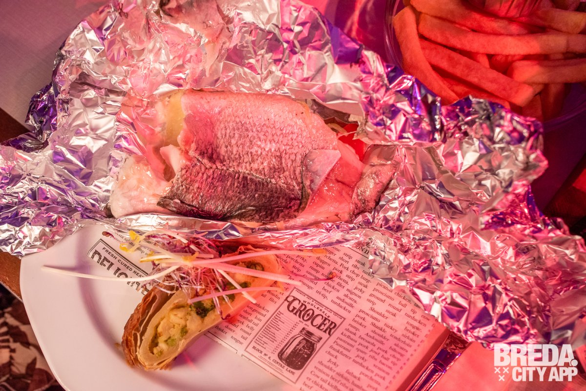 Daarnaast de dorade en papilotte: een staalvinnige vis met beurre blanc en groentenstrudel.