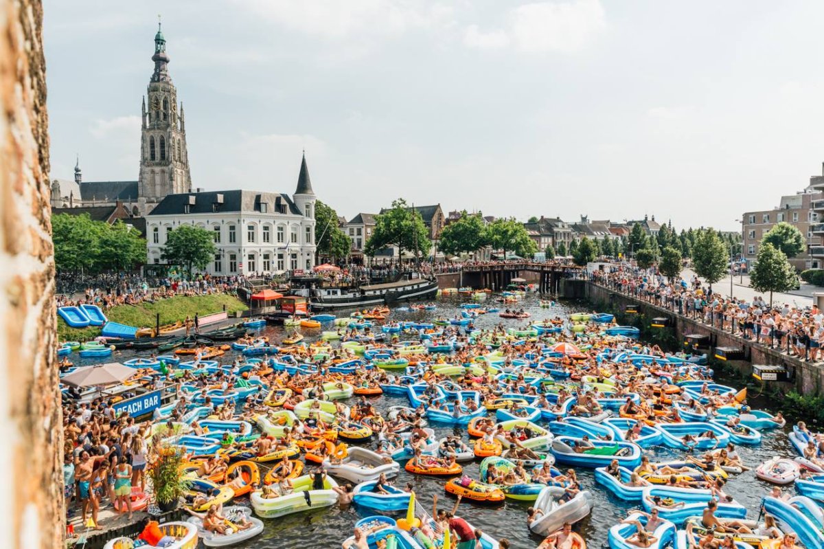Overgekomen uit Scandinavië en inmiddels ook in Breda een mega hit, dat blijkt uit de 2000 verkochte kaarten van vorig jaar!  Met je rubberboot door de singels vaar je langs de vele barboten en muziekpodia, om na een zalige middag dobberen de dag knallend af te sluiten bij Strand Binnen!