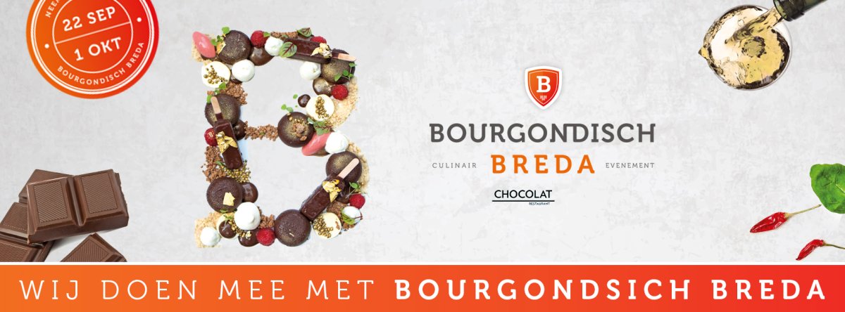 Van 22 september t/m 1 oktober wordt Bourgondisch Breda georganiseerd, het evenement voor fijnproevers en levensgenieters. Dat spreek ons natuurlijk wel aan! Bourgondisch Breda wordt nu niet meer in de Grote Kerk georganiseerd, maar als stadsbreed evenement met meer dan 100 deelnemende restaurants. Het is daarmee het grootste culinaire evenement van Nederland op stadsniveau.