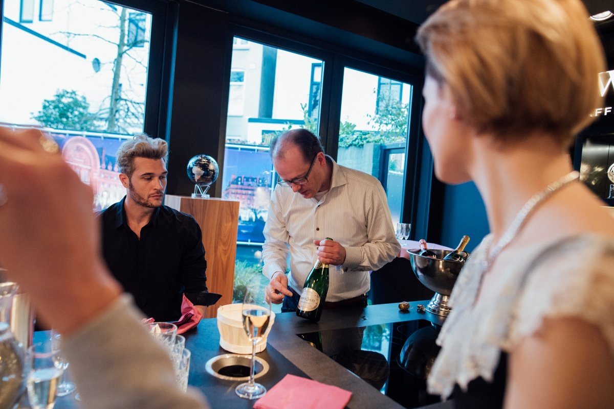Robert Hoogland is erkend vinoloog en verhandelt via zijn bedrijf de lekkerste wijnen. Op verzoek komt hij ook op locatie voor verschillende proeverijen van wijn, port, likeur, whisky, rum, gin en champagne. De proeverijen van Hoogland worden ook op maat aangeboden, waarbij beleving en foodpairing centraal staan. Wij kozen in dit geval voor de combinatie tussen champagne en oesters. Meer informatie is te vinden op Hooglandwijnimport.nl