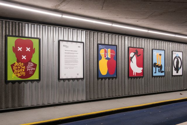 De tentoonstelling bestaat uit culturele en maatschappelijke posters. Zo komen er theater en literatuur gerelateerde posters voorbij met bijvoorbeeld Macbeth, Alice in Wonderland en Swan Lake, maar ook posters waarin onderwerpen als vluchtelingen, de vele straathonden in Chili en Donald Trump centraal staan.