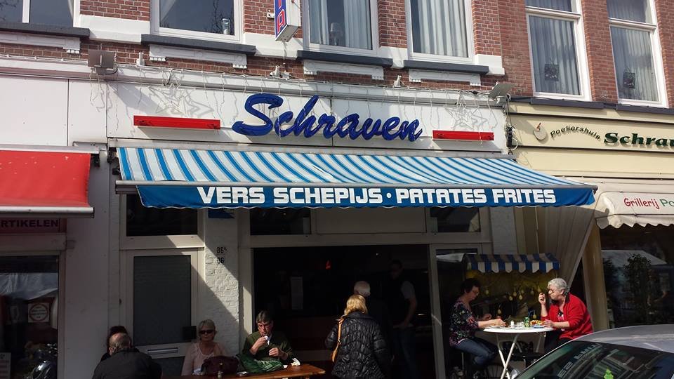 Terwijl we teruglopen richting de Haagdijk valt ons oog op Cafetaria Schraven, waar het opvallend druk is midden op de dag. We vangen op dat mensen van heinde en ver komen, speciaal voor de nasiballen van Cafetaria Schraven. Dit moeten wij natuurlijk ondervinden! De nassiballen die wij tot nu toe aten waren veelal droog en muffig. Tot... vandaag!