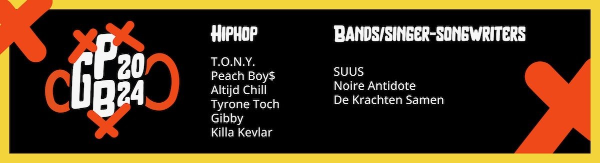 De Grote Prijs Breda is tot stand gekomen in samenwerking met POB, Sound Dog, Pier15, Phoenix en Breda Barst.