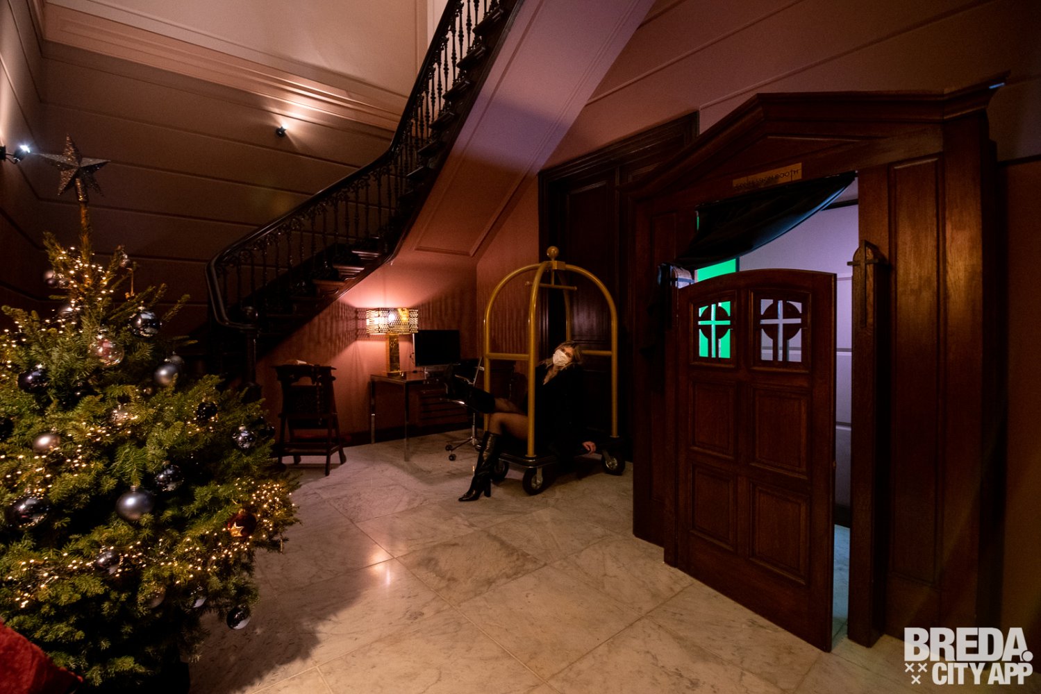 Vanuit hier lopen we nog even langs de lobby naar de "confession booth". Een leuke manier om je aandenken op foto vast te leggen! Ook kijken we hier met verwondering naar de oude trap en de prachtige ornamenten in het hotel. Je waant jezelf echt in een sprookje bij dit bijzondere hotel.