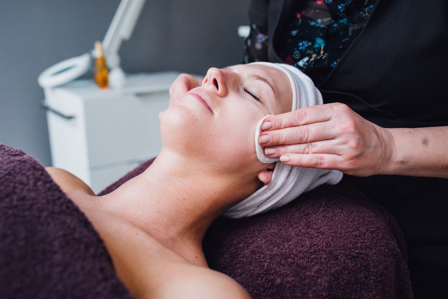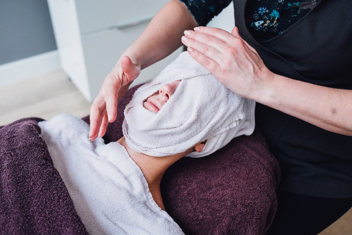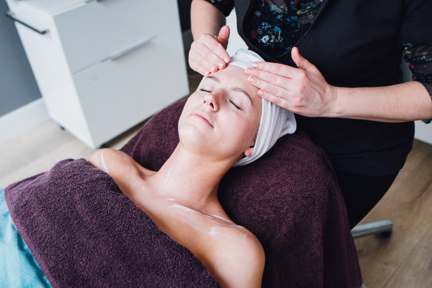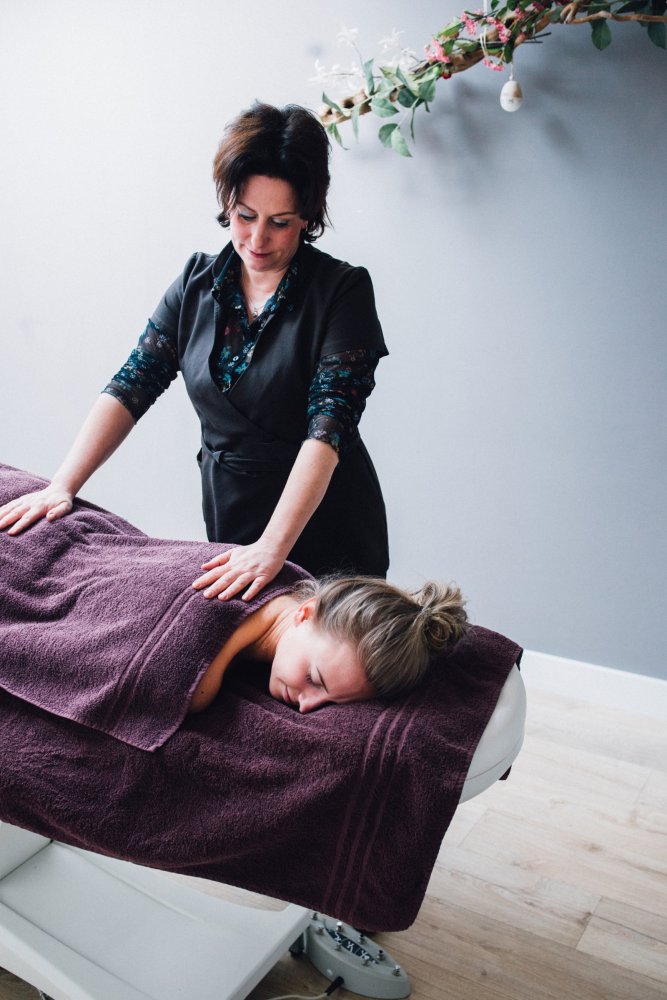 Dan kunnen we van start. Eerst krijg ik een heerlijke rugmassage, ik lig lekker op een zacht bed onder een heus dekbed. Dat is pas écht relaxed. Edith gebruikt producten van Decleor, deze zijn speciaal ontwikkeld om ontspanning te stimuleren. Eventjes genieten en dan kan ik me omdraaien voor een gezichtsreiniging. Veel stappen volgen, ik lig te genieten en volg niet precies welke stappen van de behandeling ik onderga. Ik vertrouw volledig op Edith die zachtjes mijn gezicht masseert met heerlijke producten.