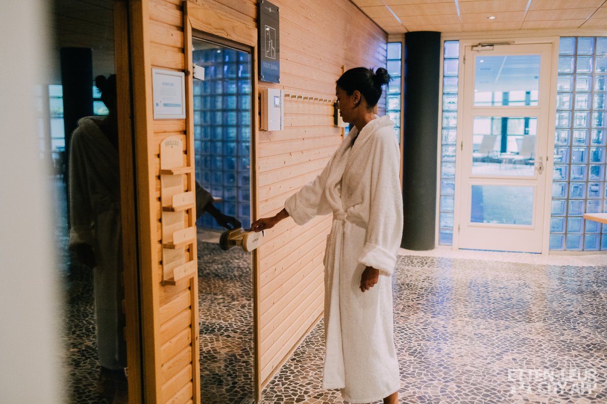 Bij binnenkomst worden we vriendelijk ontvangen en naar de kleedkamers gewezen. In de wellness hangt een heerlijk ontspannen sfeer en er bevinden zich veel ligstoelen rondom het zwembad om even op te ontspannen. We besluiten om onszelf als eerst heerlijk onder te dompelen in de jacuzzi. Dit is genieten!