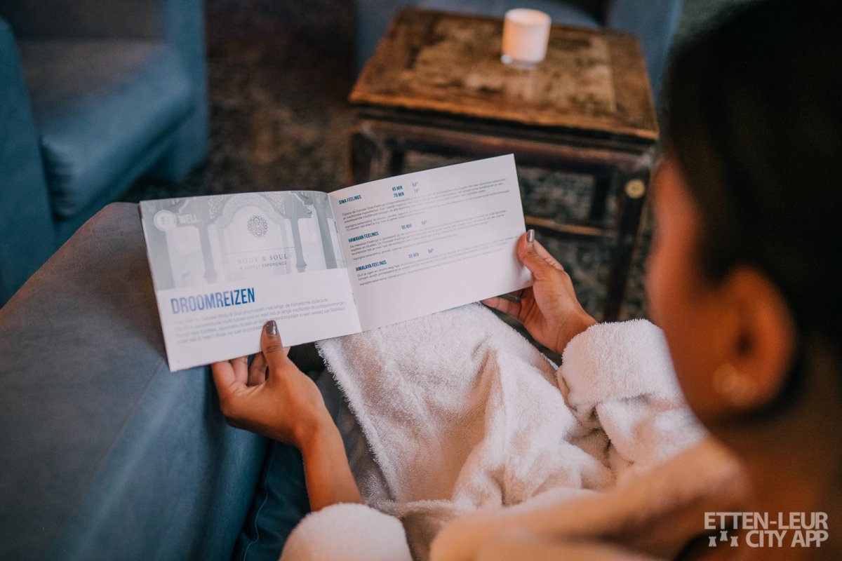 In de brochure lezen we over de verschillende massages en behandelingen. De "droomreizen" trekken onze aandacht en daarom besluiten we om een massage te boeken aan het eind van ons verblijf.