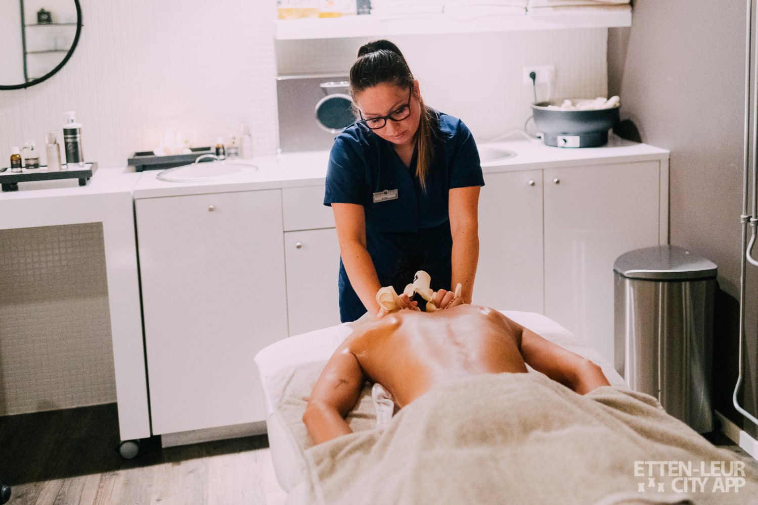 Ons volgende bezoek brengen we aan de infraroodstralers. De warmte hiervan dringt heel diep door in je lichaam en is heerlijk om de spieren in je rug mee te doen ontspannen.