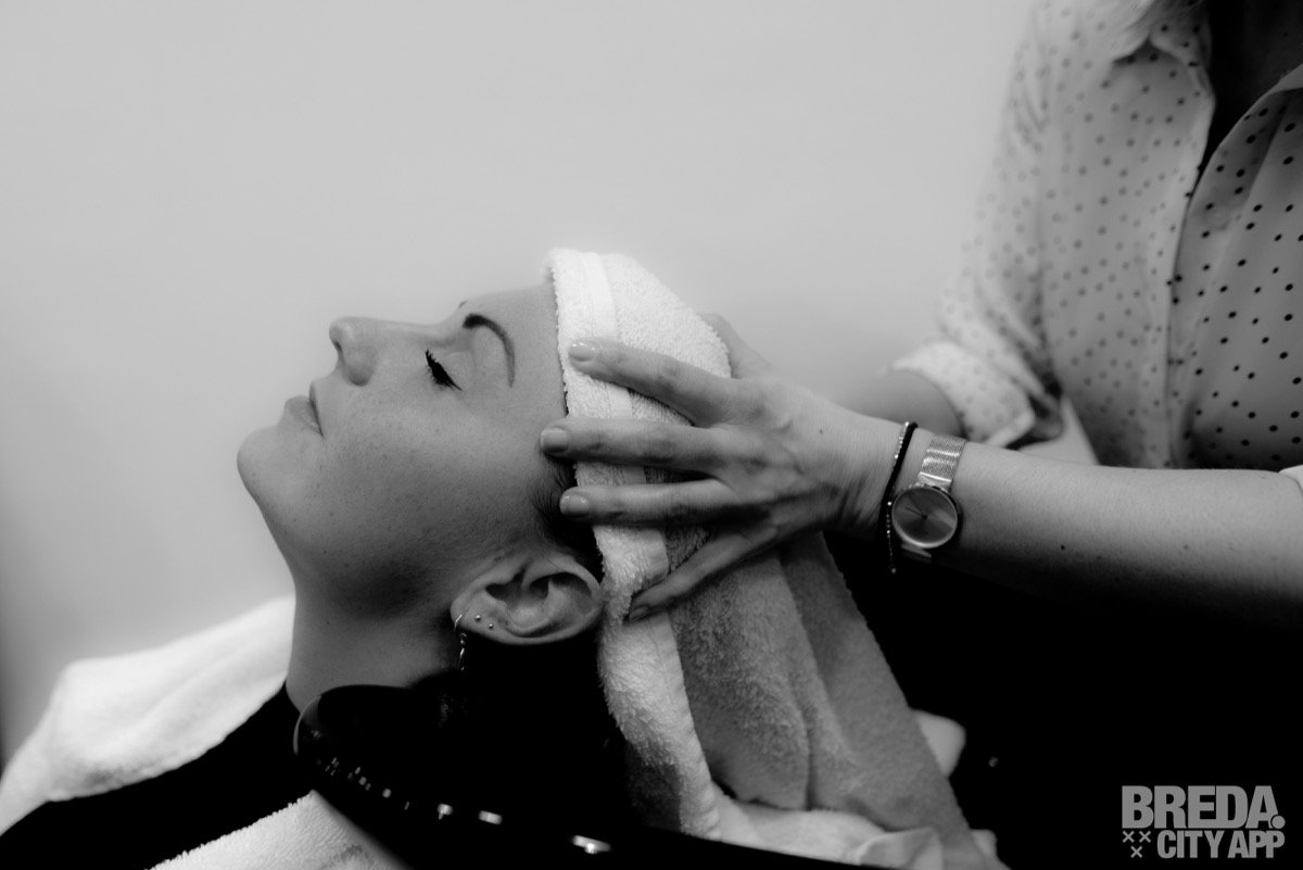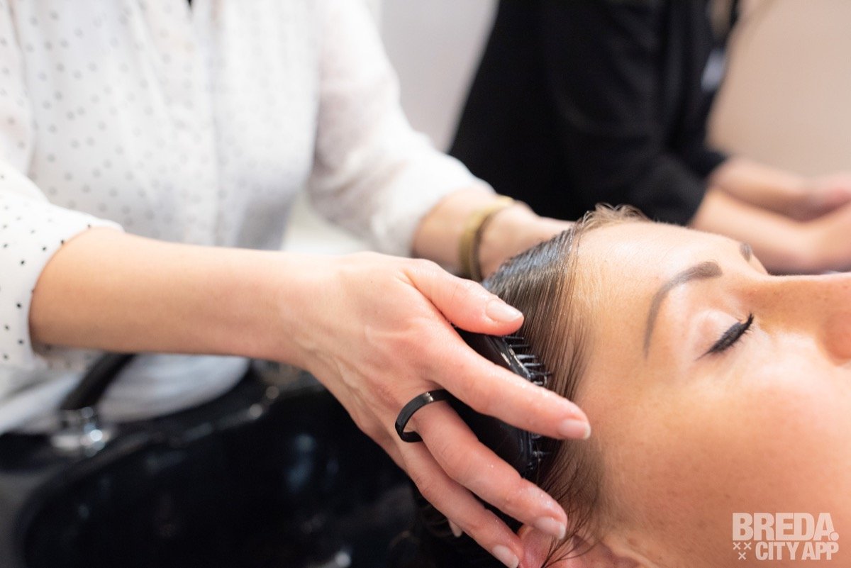 Na het aanbrengen van de conditioner wordt mijn hoofdhuid opnieuw gemasseerd, dit keer met behulp van twee speciale borsteltjes. Hemels!