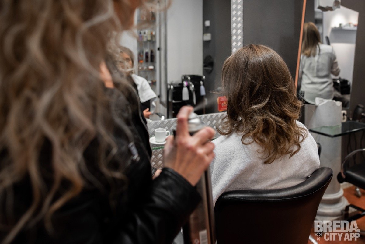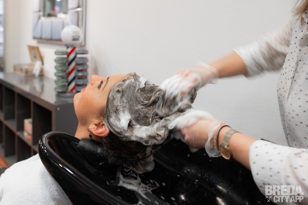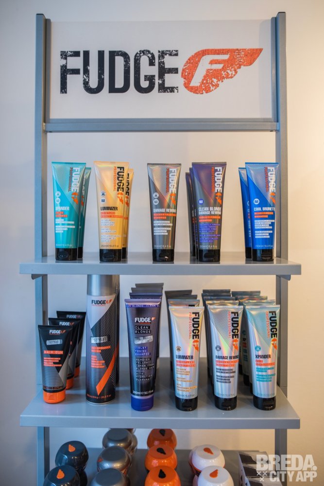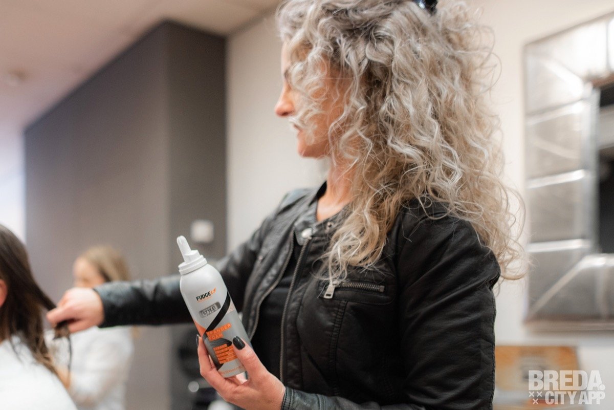 Na het uitspoelen van de conditioner neem ik plaats in een andere stoel en word mijn haar voorzichtig geborsteld. Vervolgens wordt de 'Xpander Foam' van Fudge aangebracht. Dit is een haarmousse met vezelhechttechnologie die elk haartype letterlijk uitbreid en volume geeft.