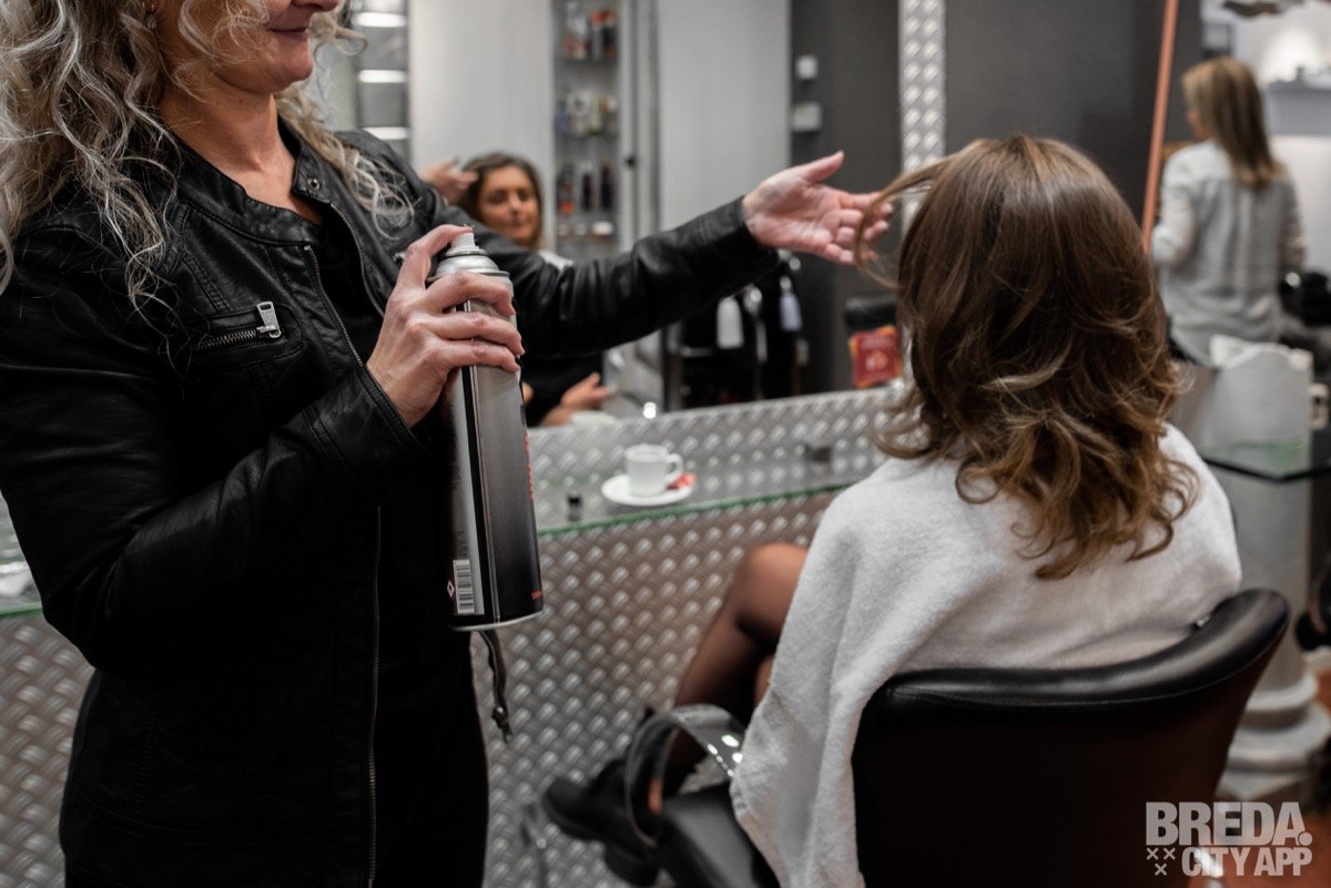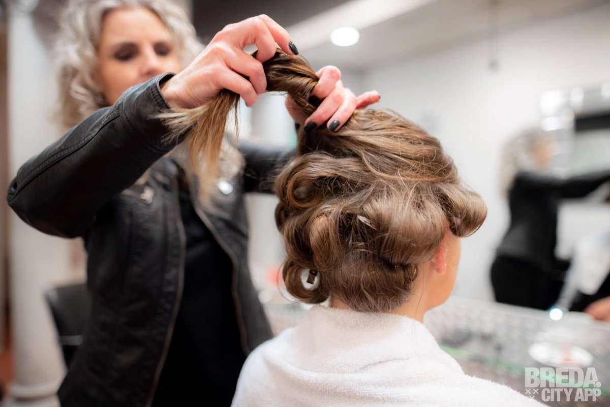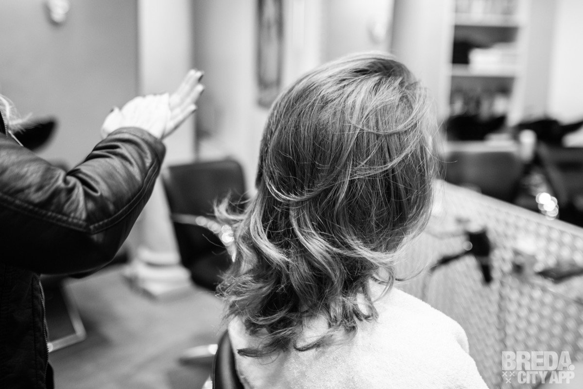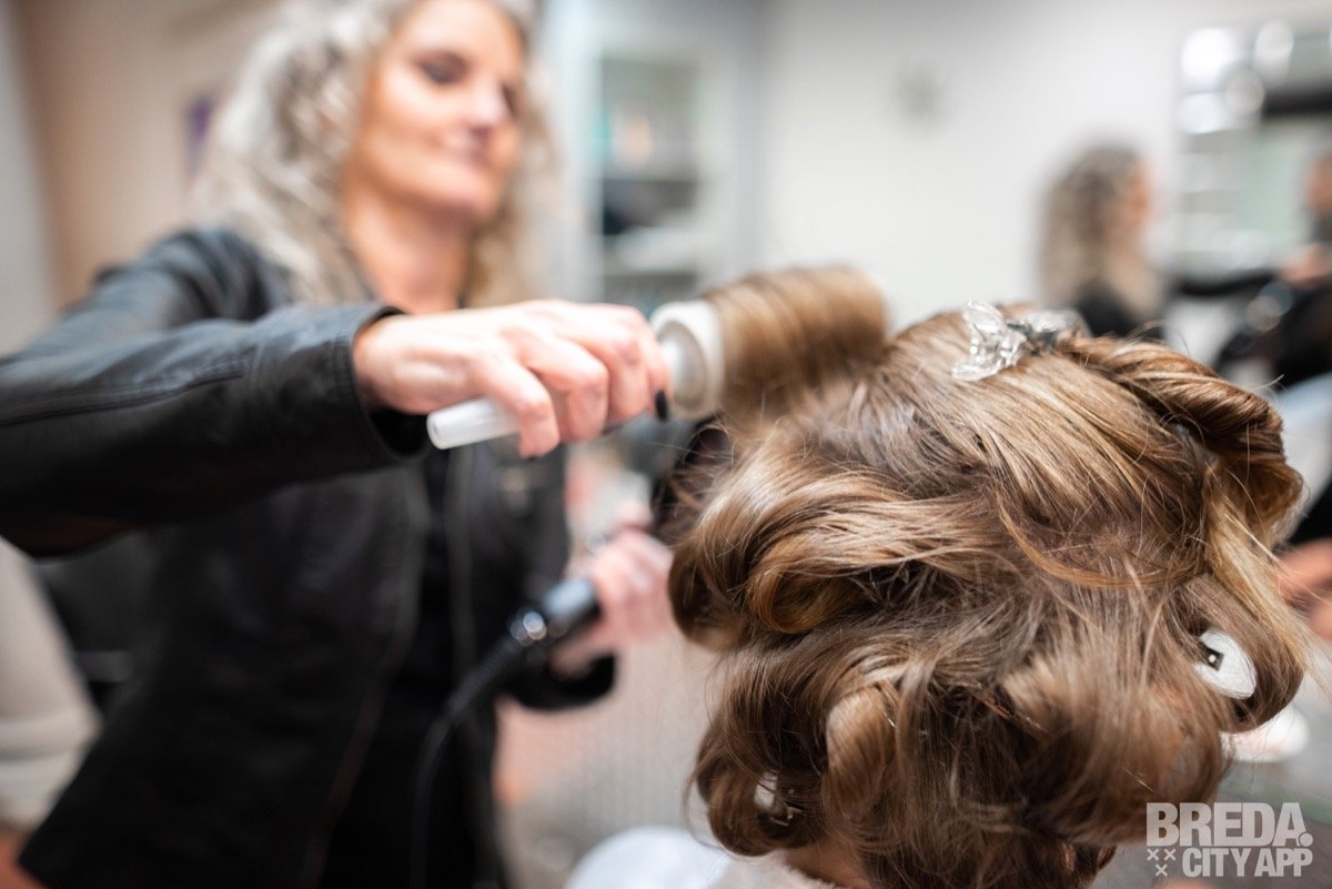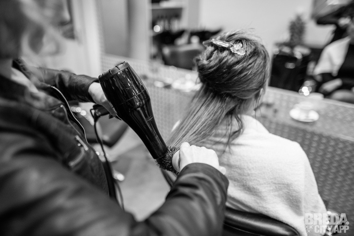 Vervolgens wordt mijn haar mooi in model geföhnd. Eigenaresse Sylvie gebruikt hier voor niets meer dan een föhn, ronde borstel en een aantal haarklemmen.