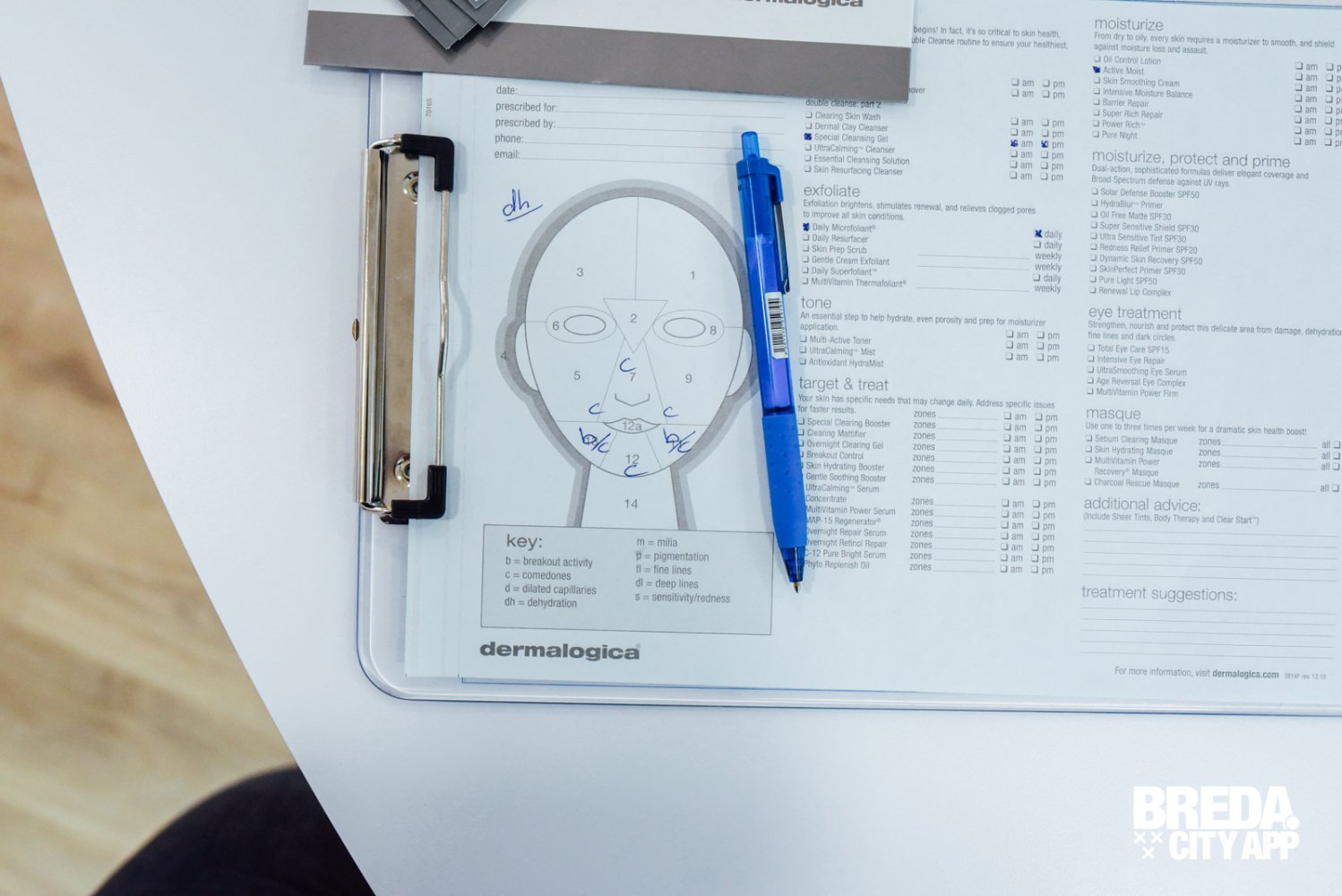Ik begin met het invullen van een consultation card waarbij vragen gesteld worden over mijn levensstijl, medicijngebruik en beauty producten die ik op dit moment gebruik.