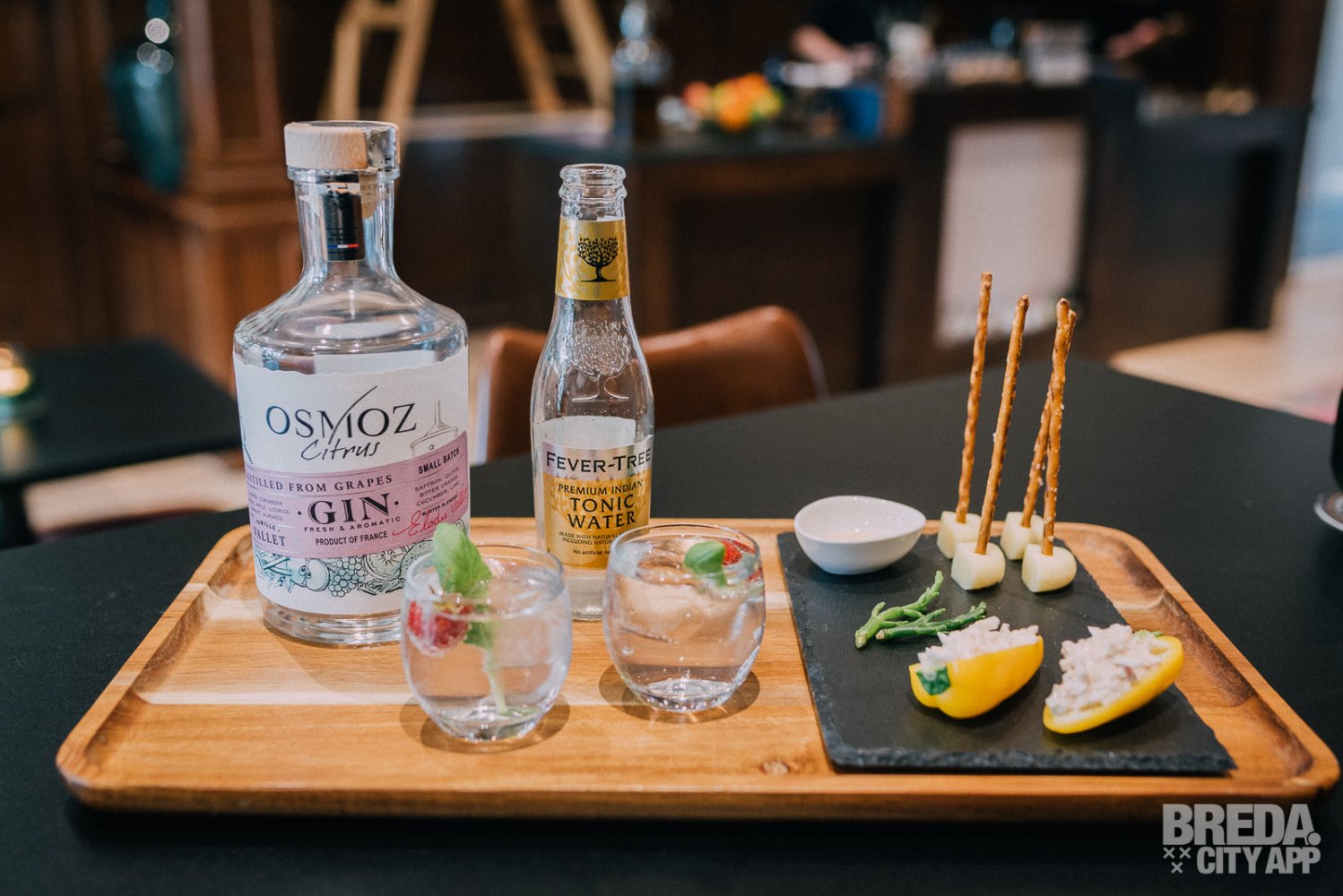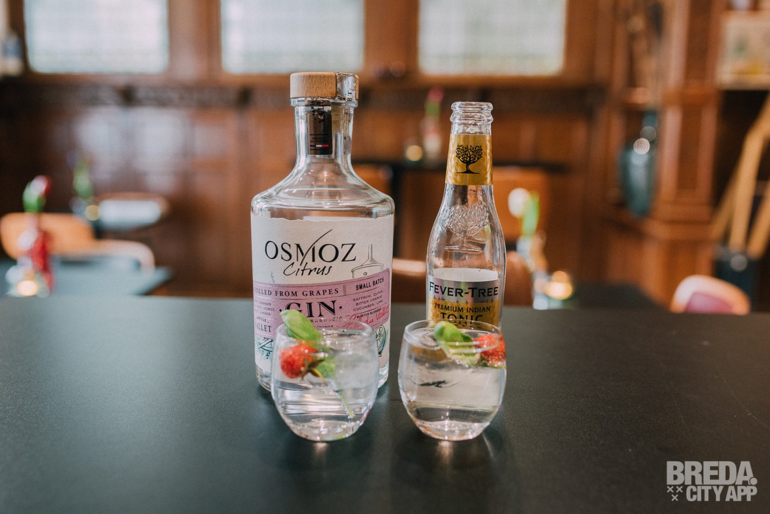 De volgende gin van Osmoz is een bijzondere. Osmoz doet namelijk veel met druiven en de Osmoz Citrus Gin heeft dan ook als basis een druivendistillaat. De gin heeft een overwegende citrus tint en is fris en tegelijkertijd kruidig van smaak. De gin wordt geserveerd met een gewone tonic om de smaken mooi in balans te houden en een garnituur van basilicum en aardbei. De gin heeft een sterkere smaak, maar een hele mooie zachte afdronk.