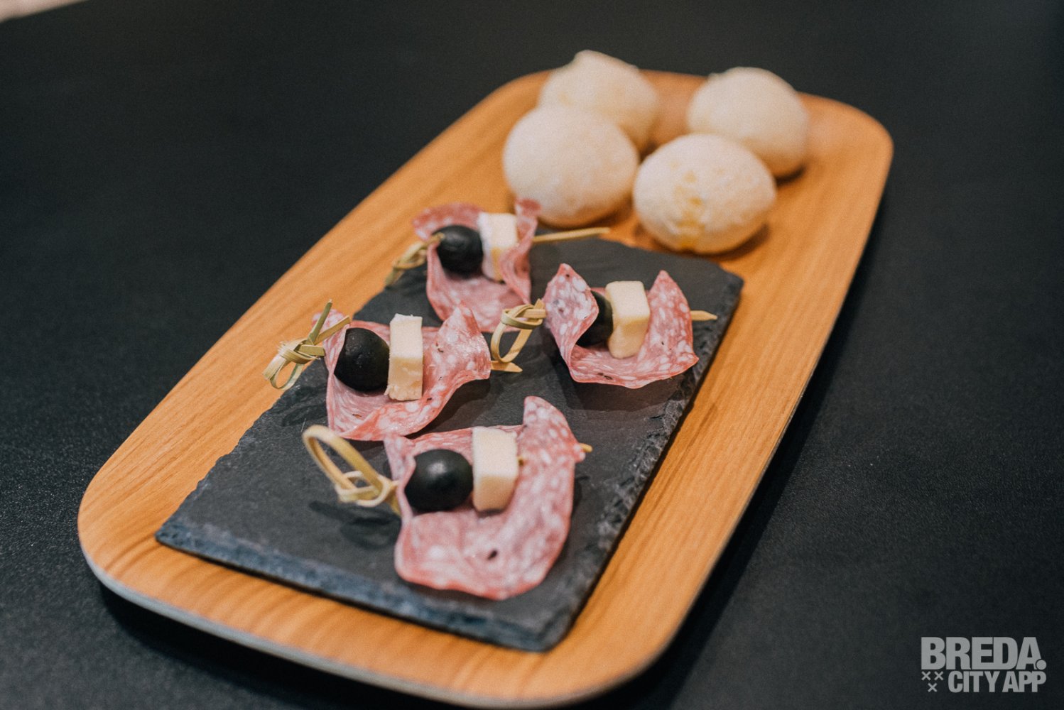 Pauline blijft ons verrassen en serveert ons de Canadese Ungava Gin. Een gele gin welke door natuurlijke wijze gekleurd is. De gin heeft een gele kleur door de kruiden die worden toegevoegd welke door de Indianen gebruikt worden. In het hoge noorden van Canada worden de kruiden geplukt en vanwege het klimaat en de temperatuur zijn deze kruiden maar tijdelijk verkrijgbaar. Het zou dus best zo kunnen zijn dat de Ungava gin tijdelijk niet leverbaar is omdat de kruiden dan niet beschikbaar zijn. De gin is exotischer van smaak en ook wat meer spicy, het aromatische tonic water neemt de gele kleur langzaam weg en zorgt voor een prachtige zomerse gin tonic. Hierbij krijgen we een truffelsalami met brie en olijf en een huisgemaakt nog warm (!) kaasbroodje. Genieten!