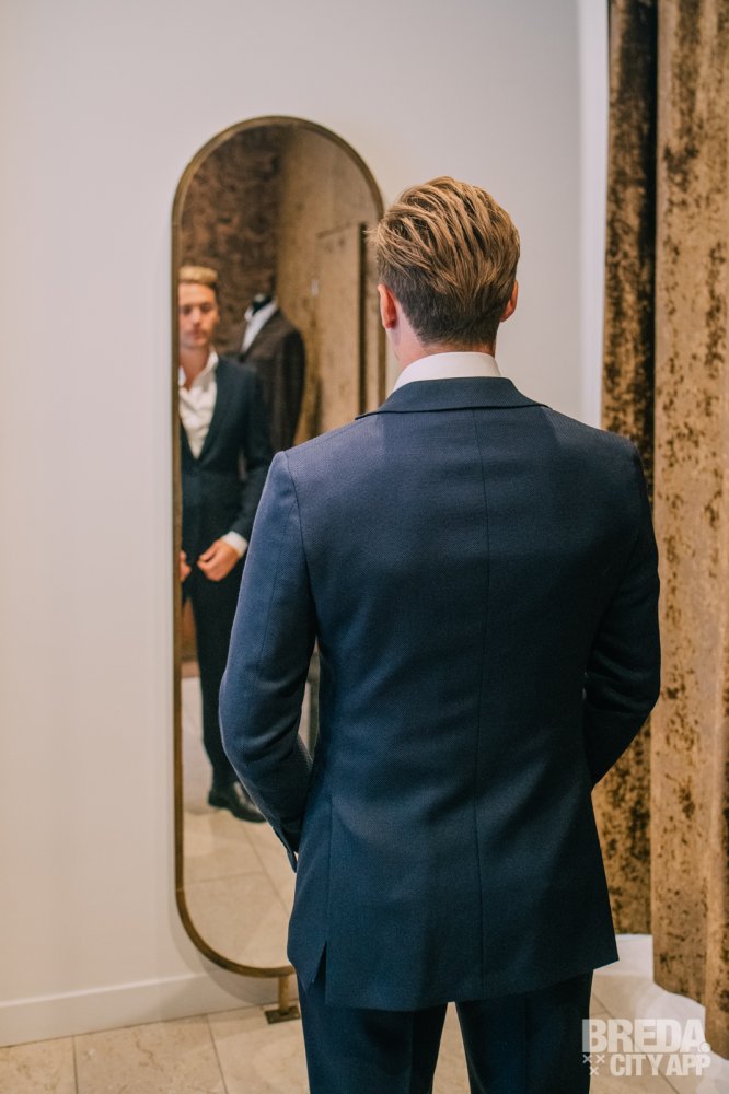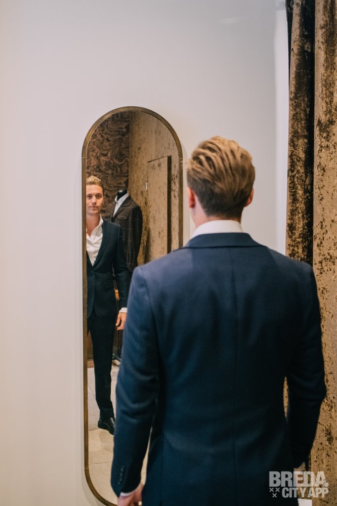 Uiteraard kan het ook voorkomen dat een pak niet in één keer perfect past legt Rolf uit. Maar dan wordt het gewoon voor je aangepast. "Niemand loopt hier zonder een perfecte pasvorm naar buiten". Met een grote glimlach kijk ik in de spiegel en bedank ik Rolf voor zijn hulp.