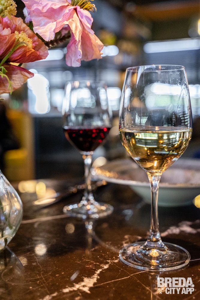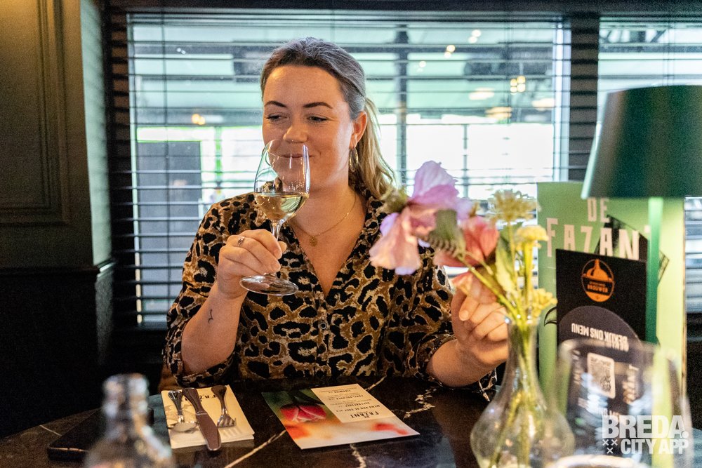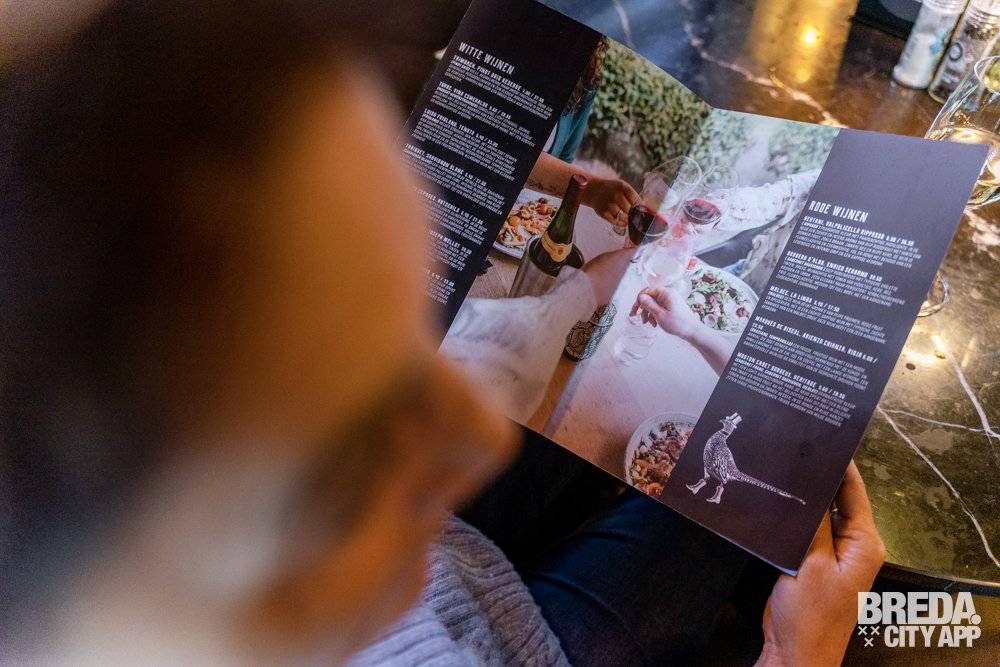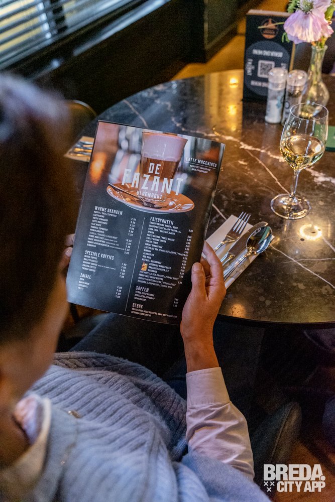 Ook al staat de lente voor de deur, op dit moment is het nog te koud om buiten te zitten. Geen enkel probleem bij De Fazant, want bij binnenkomst voel je direct de intieme, warme sfeer waardoor je je meteen thuisvoelt. Mooie industriële, zwarte lampen wisselen zich af met velvet meubels en donkere muren. Het vriendelijke personeel begeleidt ons naar een tafel in de hoek en we zitten binnen no-time aan de Pinot Grigio.