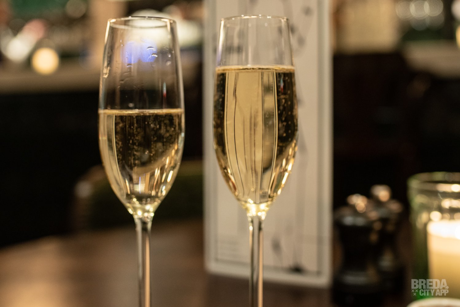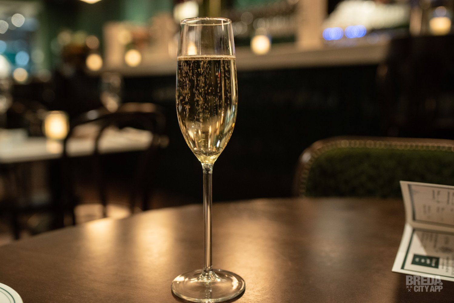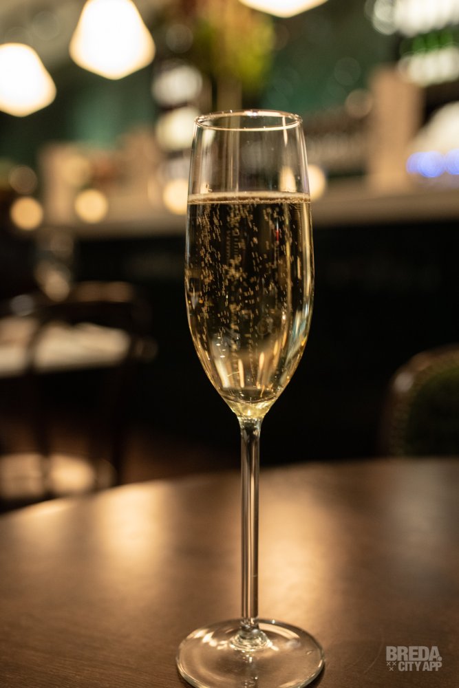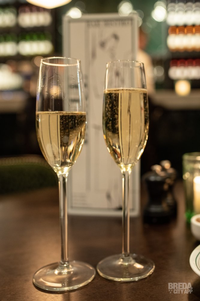 Bij binnenkomst worden we liefdevol ontvangen door de gastvrouw en -heer van vanavond. Voordat we plaatsnemen aan een knus tafeltje in het midden van deze zaak, nemen we de prachtige inrichting nog eens goed in ons op. Wat is hier veel zorg en aandacht besteed aan het interieur en de details. Alles klopt! Mooie groene tinten, klassieke bistro stoelen die je aan Parijs doen denken, lijstjes aan de muur en veel planten. Het is echt een prachtige zaak! Om dat te vieren starten we met een bubbel als aperitief! We proosten met een glas Louis Roederer Champagne. Een mooi begin van een heerlijke avond!