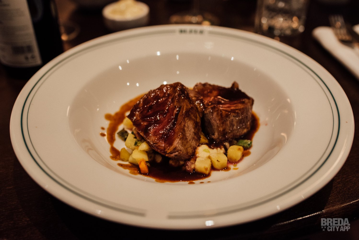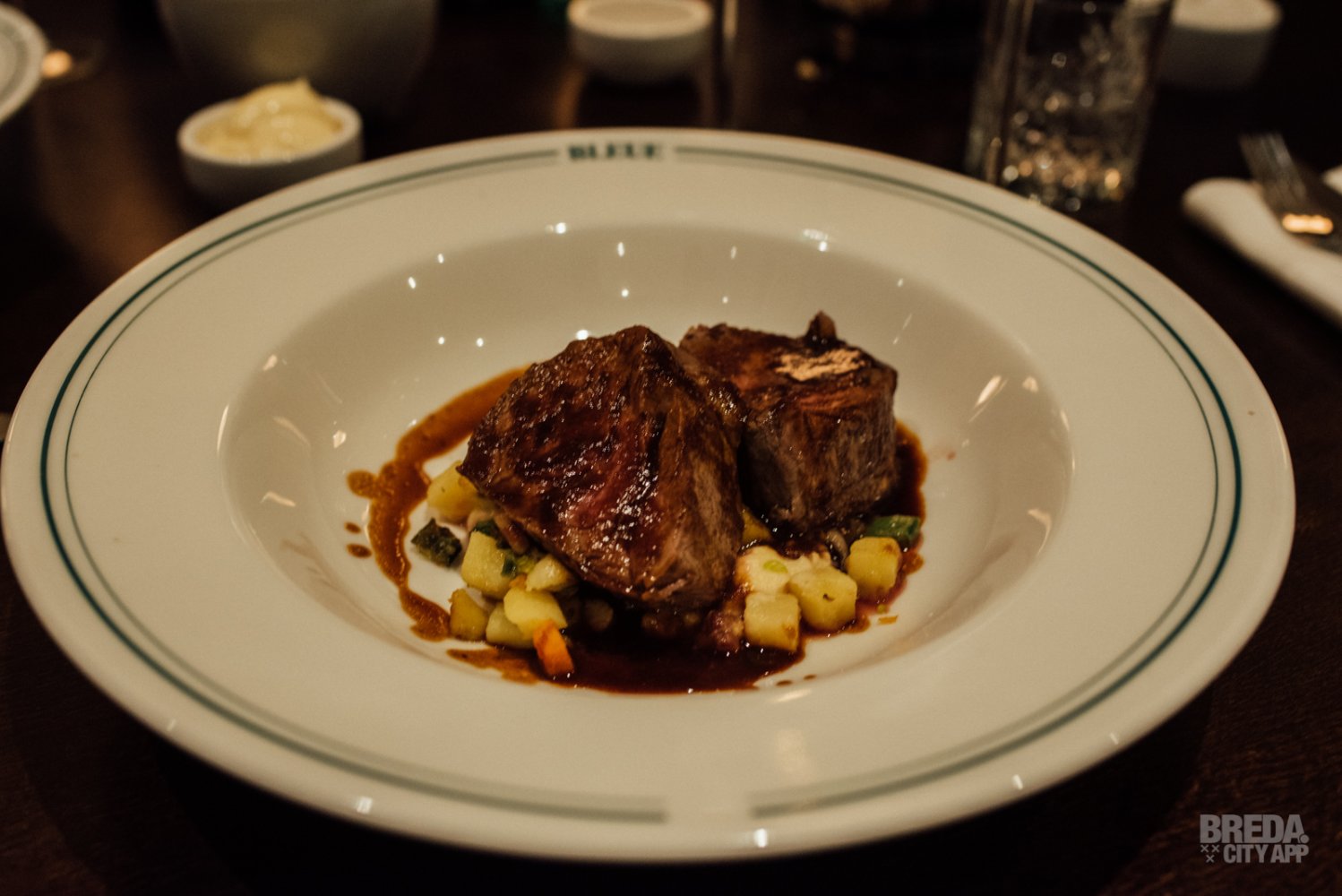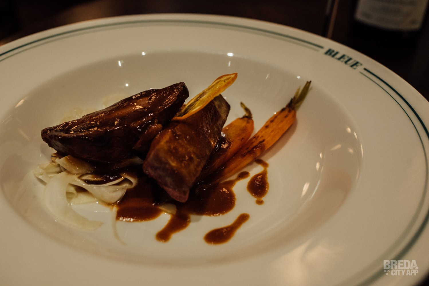 De ossenhaas is perfect gegaard en erg mals. We proeven hierbij klassieke Bonne femme en knolselderij. Een klassiek gerecht op fantastische wijze bereid en wij vinden het dan ook niet gek dat dit een van de meest geliefde gerechten op de kaart is bij Bleue. Zeker een aanrader!