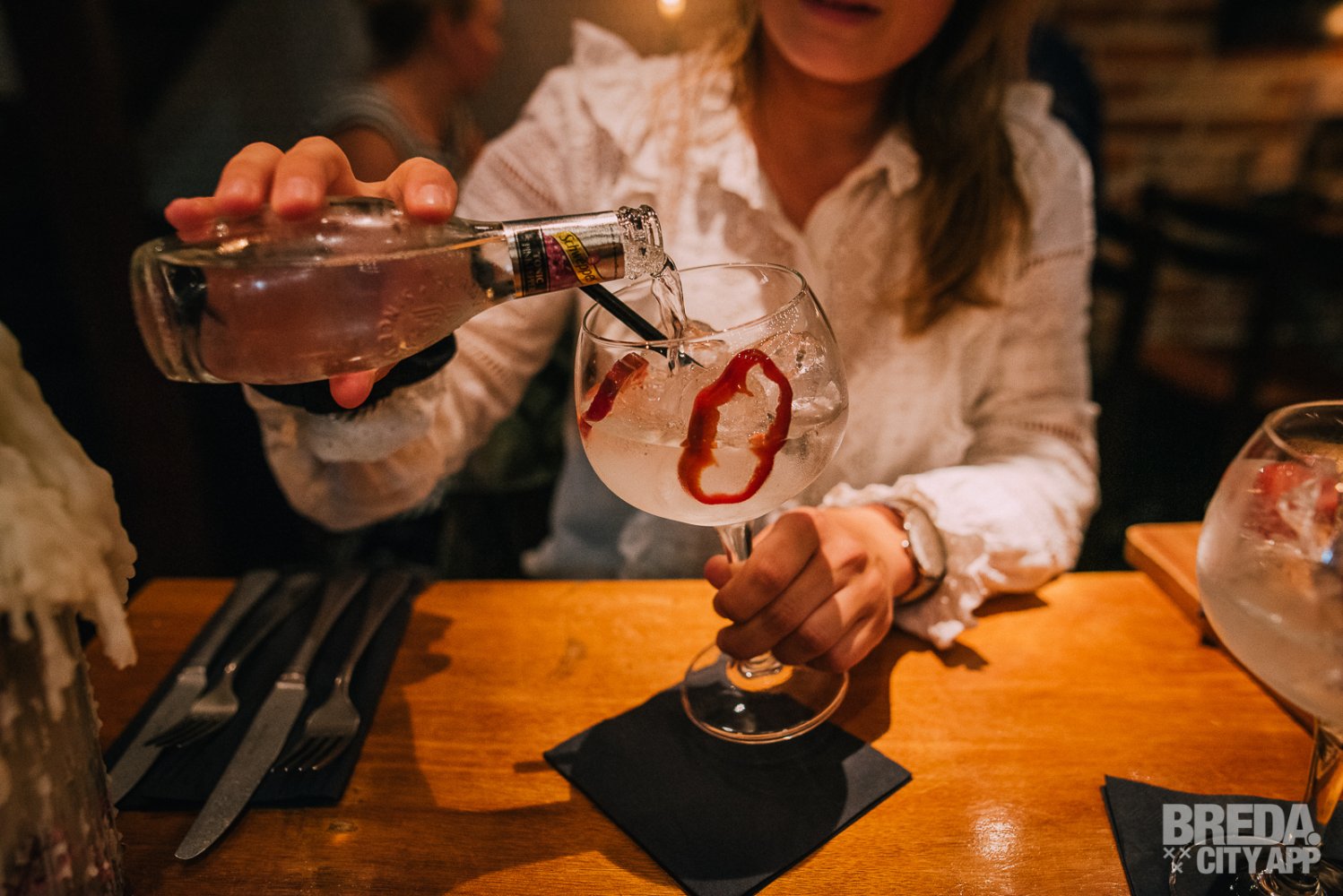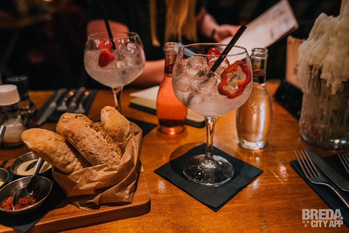 We nemen plaats aan een gezellig tafeltje en beginnen de avond met een heerlijke Gin Tonic en een lekker broodje. Mijn tafelgenoot kiest voor de Gospel Dutch Gin van Jopen met een schweppes Pink Pepper, een bijzondere combinatie geserveerd met rode paprika. Ik kies zelf voor de Hanami Gin met een schweppes hibiscus, deze wordt geserveerd met bevroren aardbeitjes en is heerlijk zoet en fris!