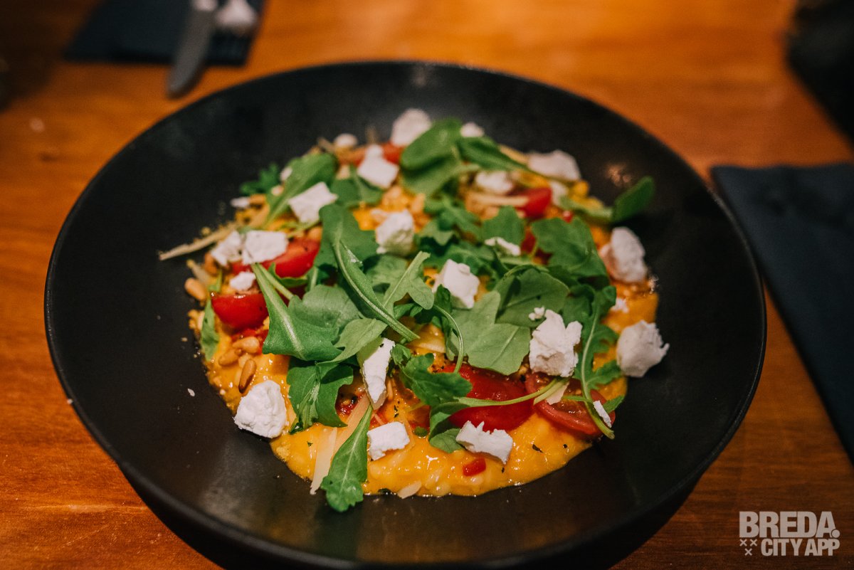 De Risotto Pomodoro is een lekkere romige tomaten-paprika-risotto met een goede bite. De risotto is afgetopt met verse tomaatjes, knapperige rucola en geitenkaas. De geitenkaas is heel zacht en romig en heeft ontzettend veel smaak. De biersuggestie bij dit gerecht is een frisse La Chouffe. Een echte aanrader wat ons betreft!