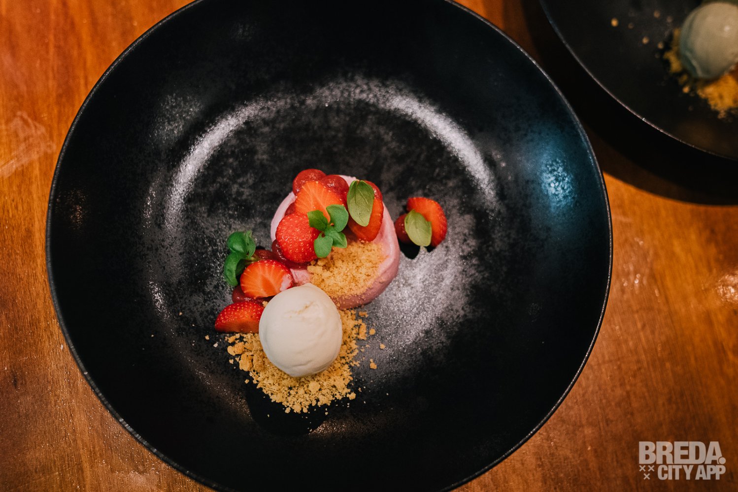 Ötzi's treasure is een heerlijk zoet dessert. Het bestaat uit een luchtige aardbeien bavarois met daarnaast een verfrissend bolletje vanille ijs. Het is afgetopt met lekkere verse aardbeien en basilicum. De basilicum in combinatie met de aardbeien zorgt voor een echte smaakexplosie!
