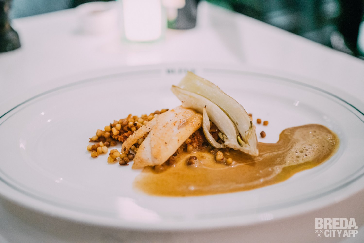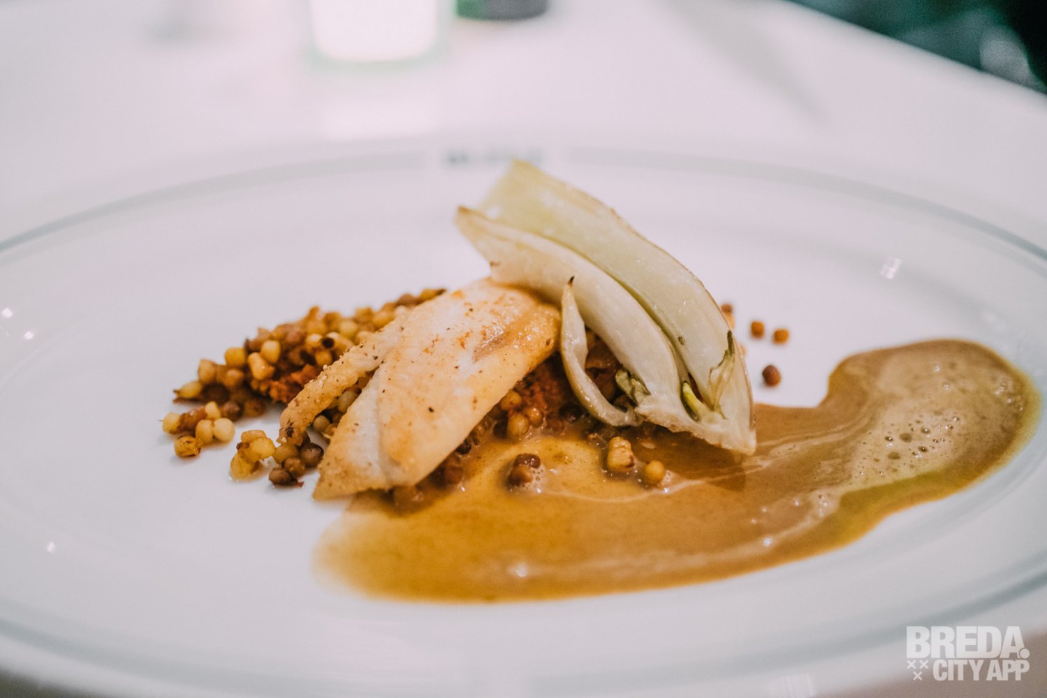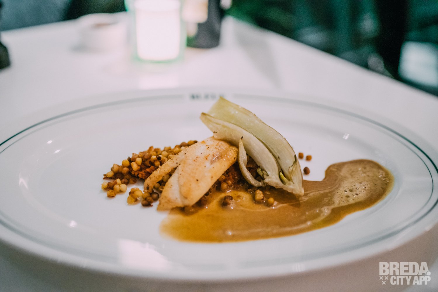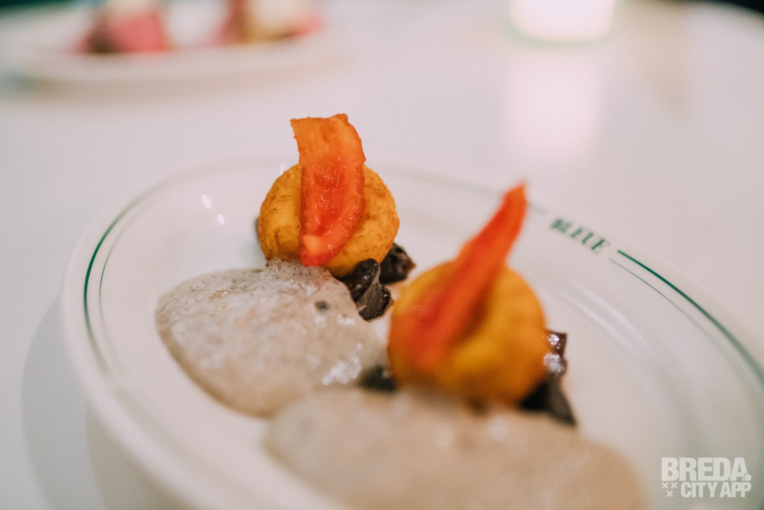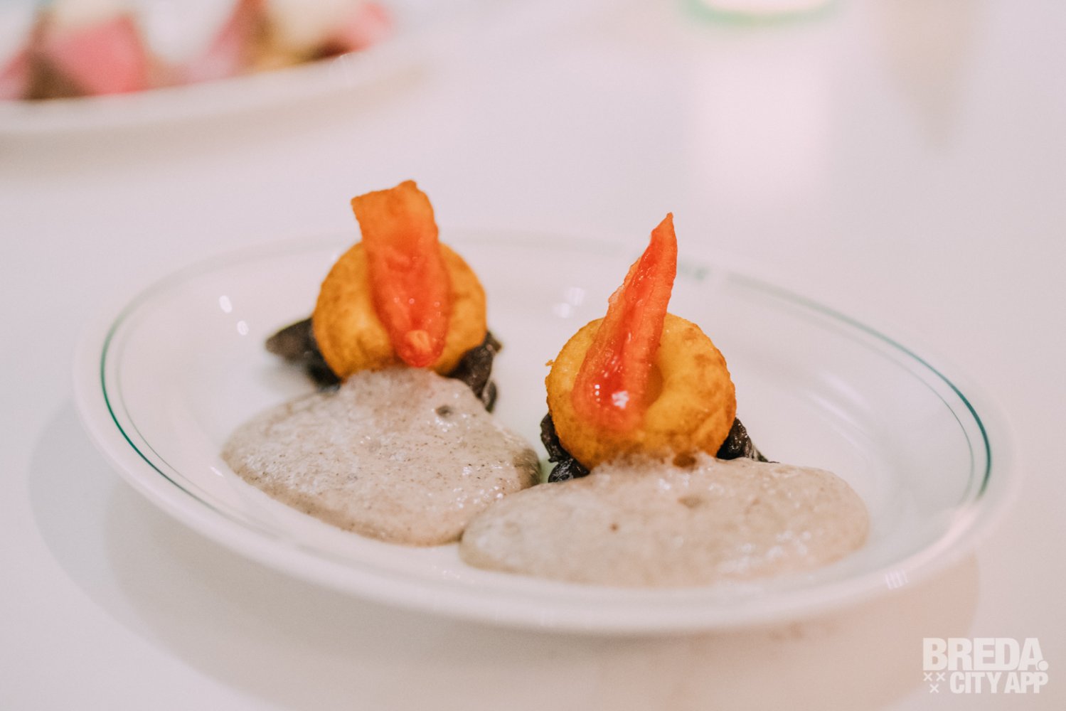 Het derde voorgerecht is een portobello met gnocchi bloemkool, een espuma van bloemkool-truffel en een umami tomaat. Het gerecht heeft mooie aardse tonen en is hoog op smaak met zuren en een zoetje. Dit, in combinatie met het samenspel van verschillende texturen maakt ook dit gerecht helemaal af.